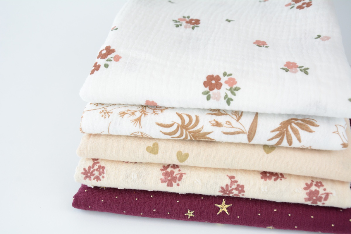 Fabric bundle is a set of 5 double gauze fabric pieces visible in the image.