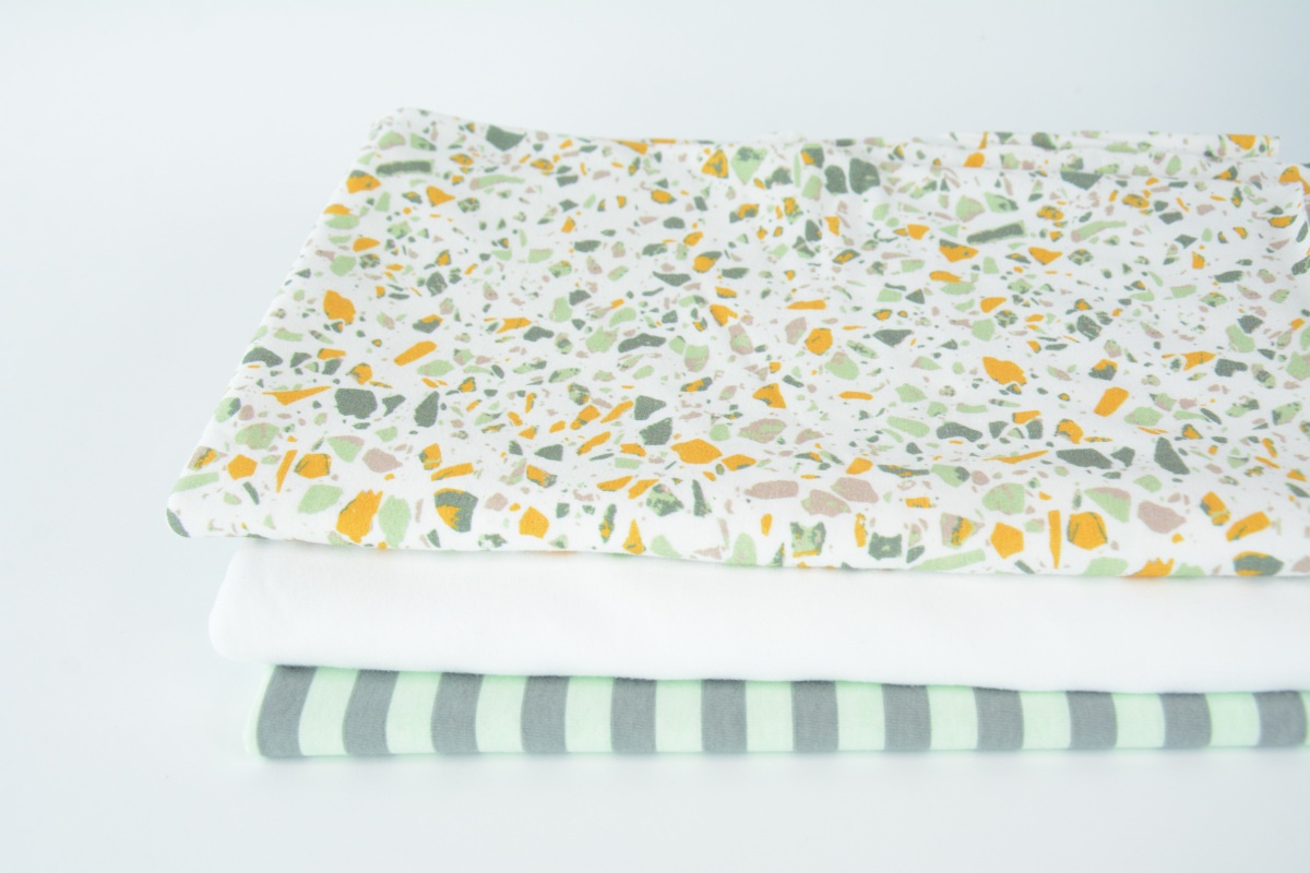 When you buy a set of fabric you will receive 3 pieces of fabric, each with a length of 50 cm x 120-160 cm.