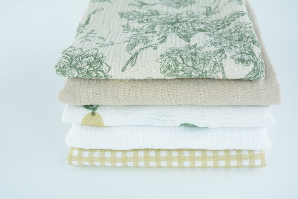 Fabric bundle is a set of 5 double gauze fabric pieces visible in the image.
