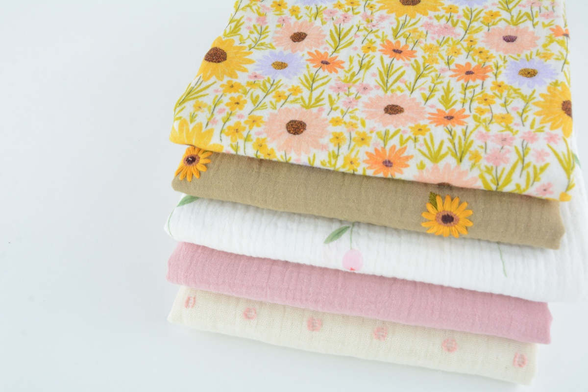 Fabric bundle is a set of 5 pieces double gauze fabric visible in the image.