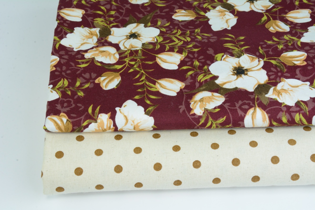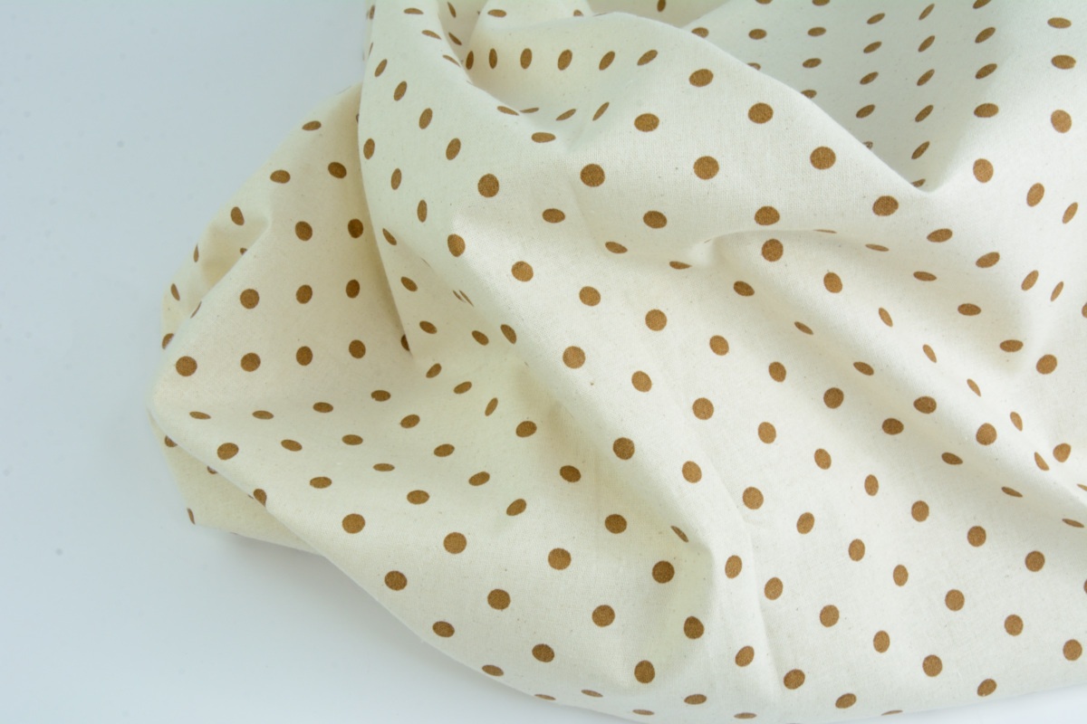 Cotton fabric, poplin with brown dots on a natural background