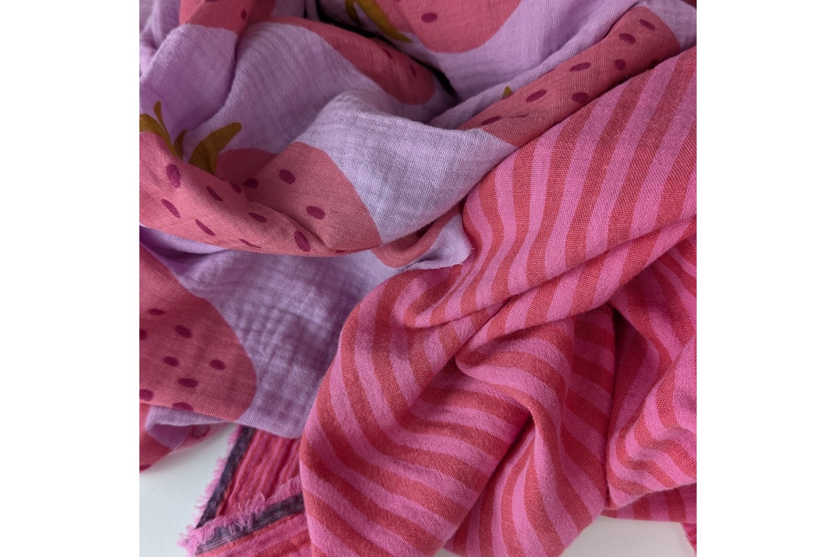Cotton muslin, double-sided pink-red stripes