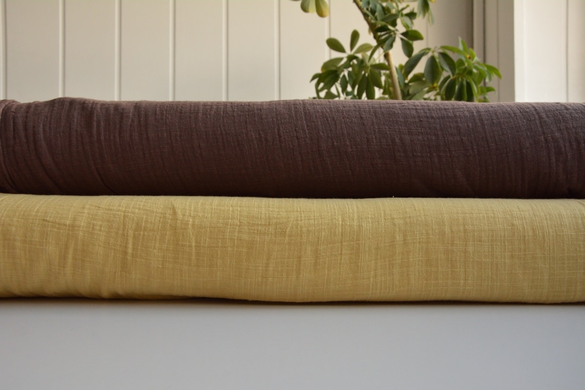 Soft, high quality cotton fabric - double gauze, linen look, in a ligt mustard colour.