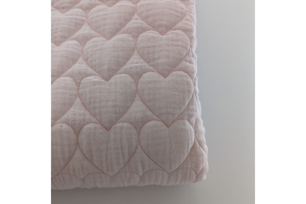 Quilted pink muslin with heart pattern – double-sided with wadding