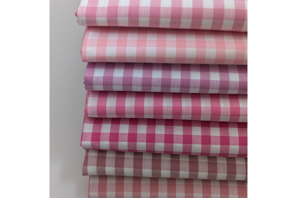 Cotton fabric in a pattern of 10mm, pink vichy check.