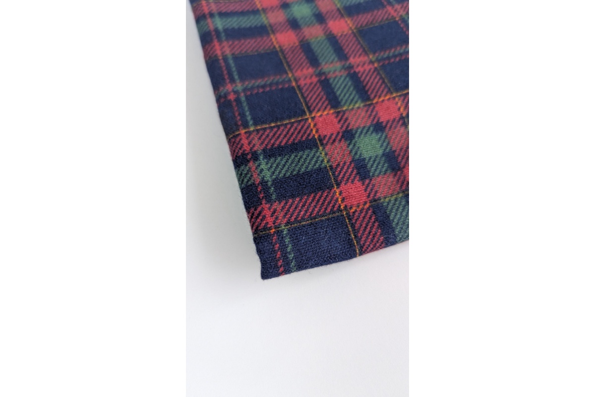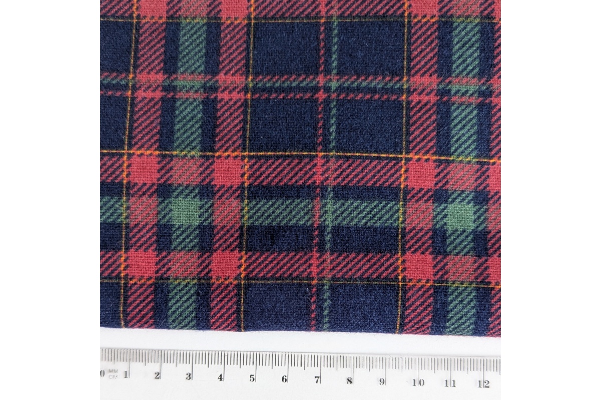 Classic and cozy, this cotton flannel fabric features a navy blue and red check pattern. Weighing 165 g/m², it offers the perfect balance between softness and warmth, making it ideal for cooler seasons.