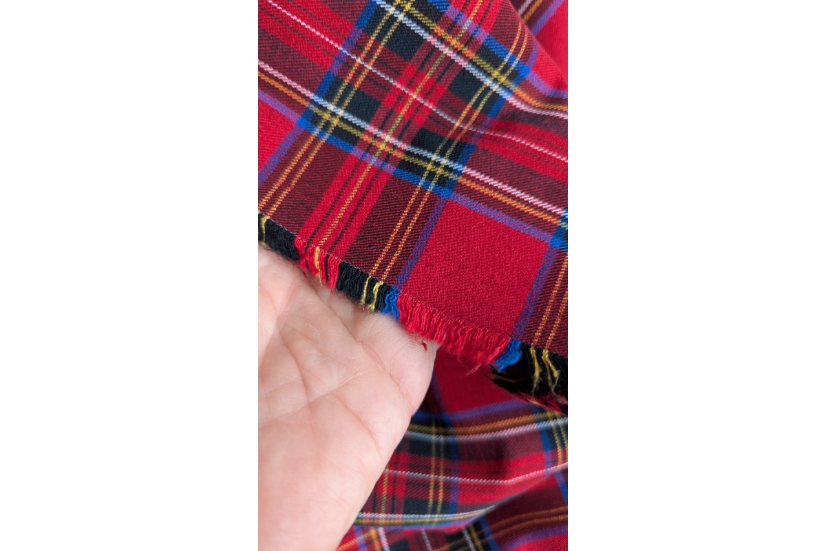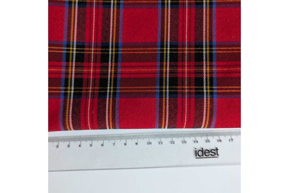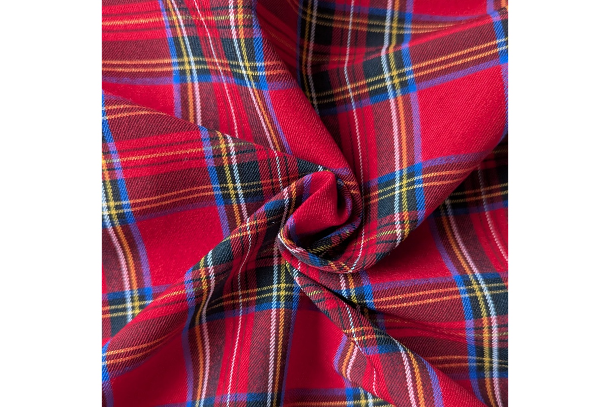 Stylish red tartan bengaline is a fabric with exceptional warp stretch, combining the elegance of a classic pattern with the comfort of modern materials. Perfect for garment making, it offers both wearability and a striking appearance.