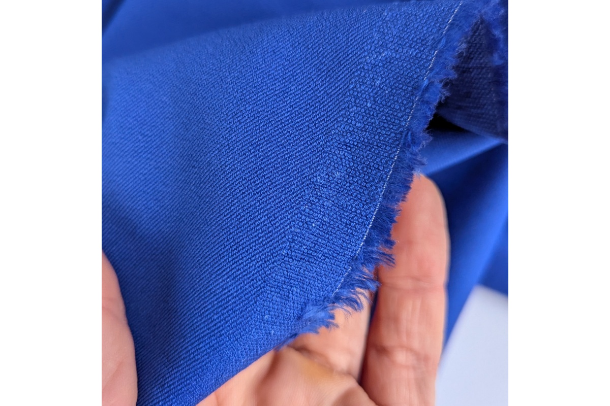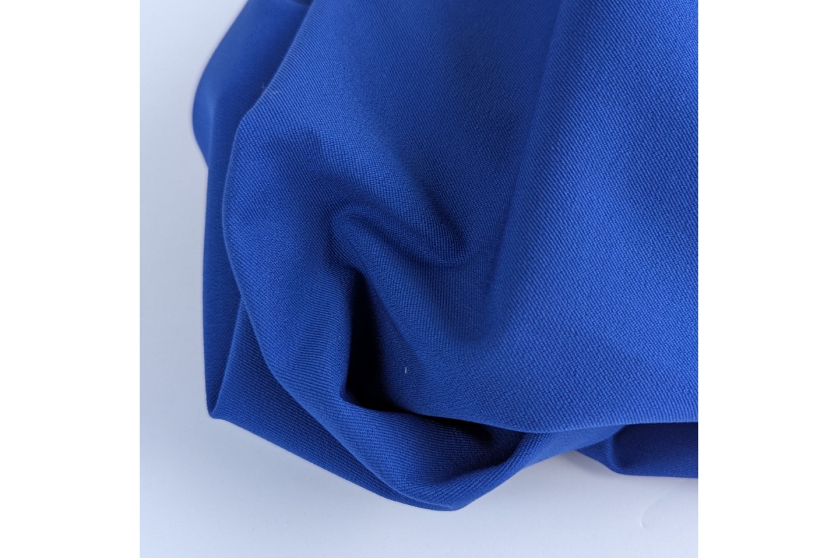 Elegant cotton twill with a touch of elastane in a cobalt shade combines a classic diagonal weave with the comfort of stretch. The fabric is durable, pleasant to the touch, and fits the body perfectly, making it an ideal choice for clothing.