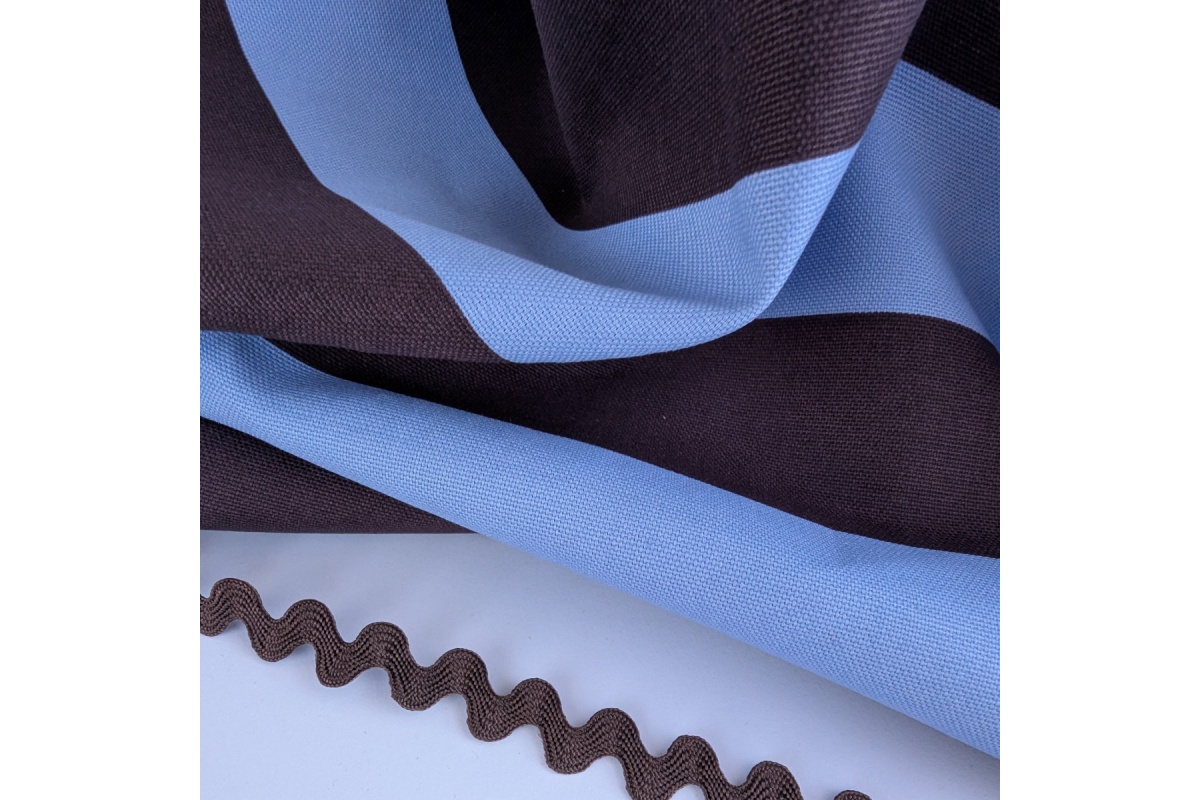 Decorative cotton fabric with 5 cm brown-blue stripes