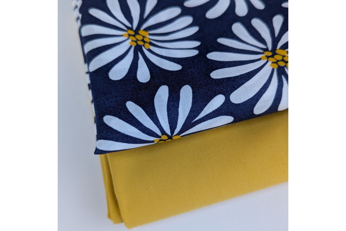 Cotton fabric, batiste in a pattern of flowers on a navy blue background.