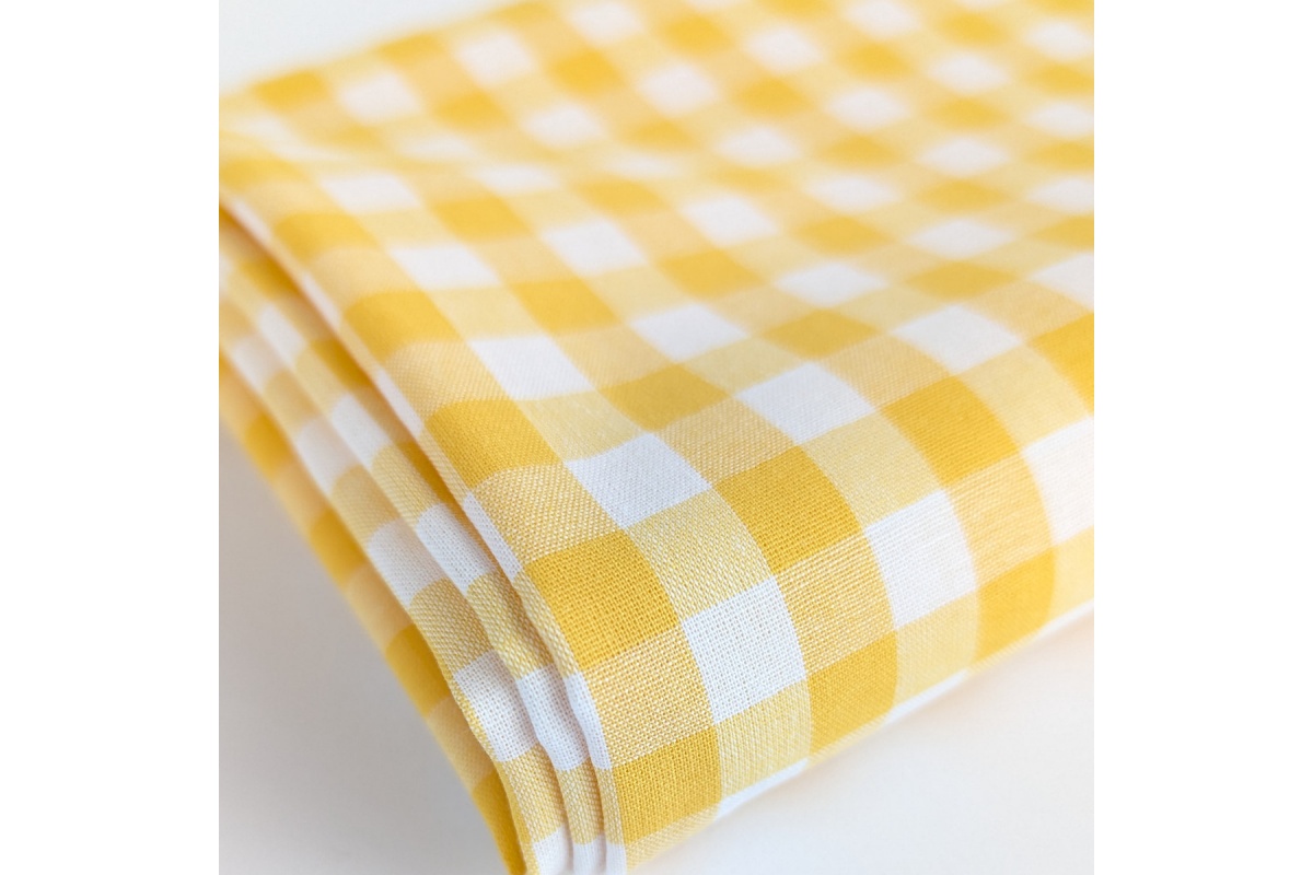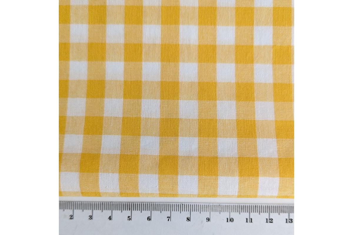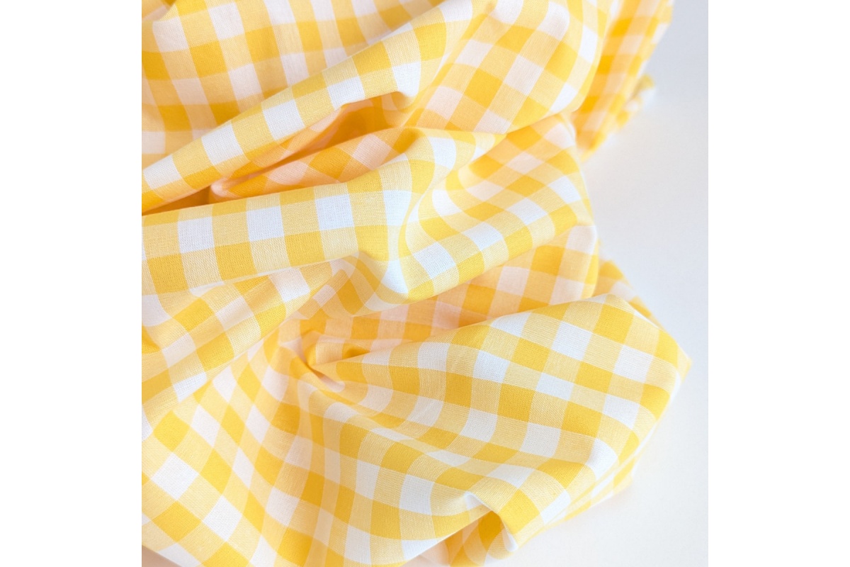 Cotton fabric in a pattern of 1cm yellow vichy check on both sides.