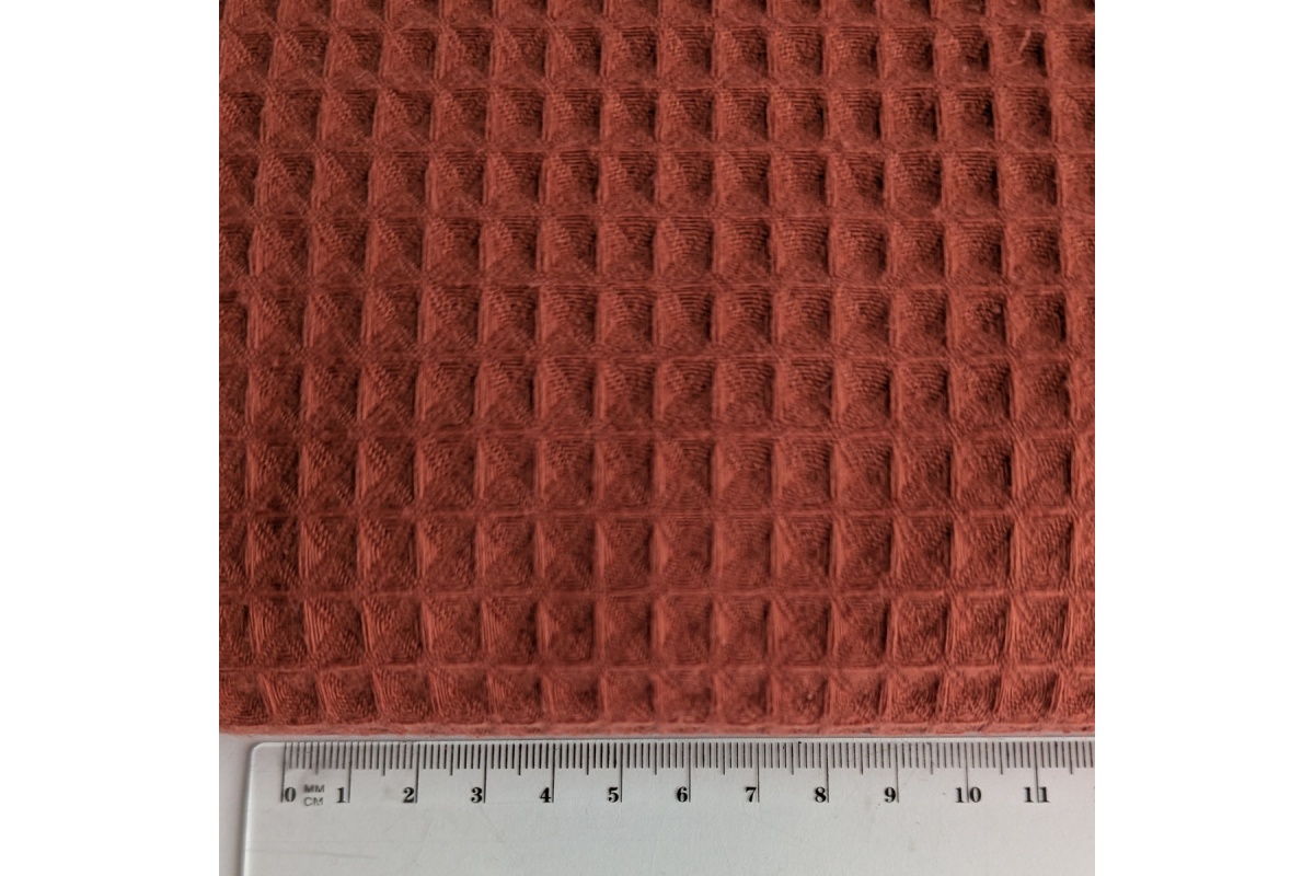 100% cotton waffle fabric in a plain rusty ginger colour.