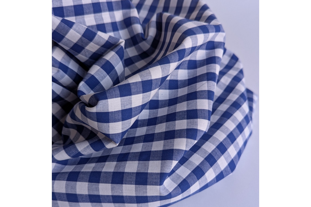Cotton fabric in a pattern of 10mm royal blue vichy check.