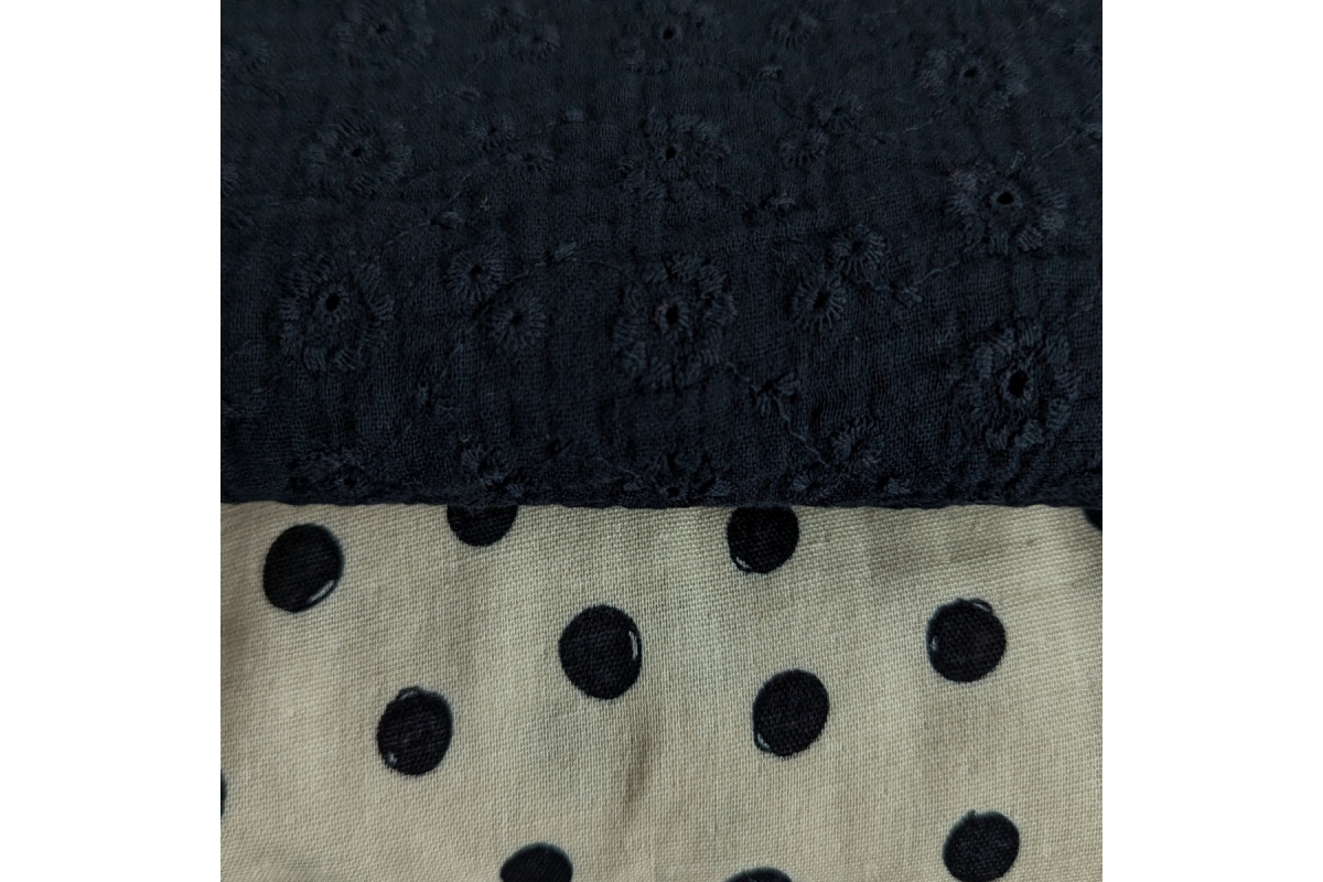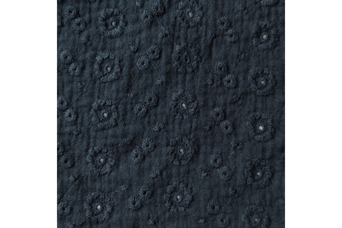 High quality cotton fabric - embroidered double gauze with flowers in a black colour.