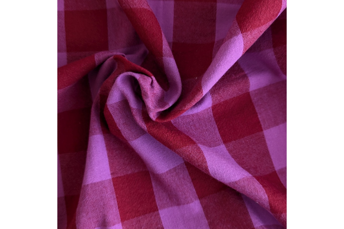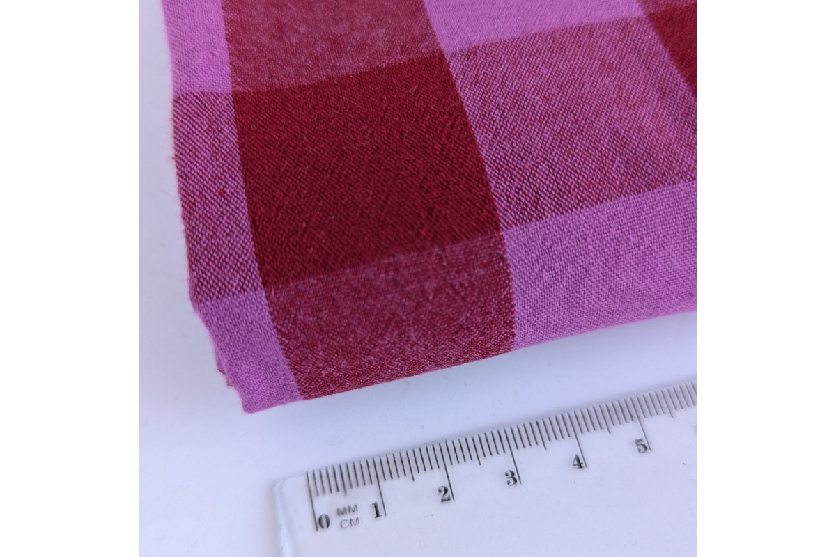 Add a bold and versatile pattern to your projects with our double-sided 3cm check fabric in rich burgundy and cyclamen. Made from 100% high-quality cotton, this fabric offers a smooth texture and reversible design, giving you two beautiful sides to choose from.