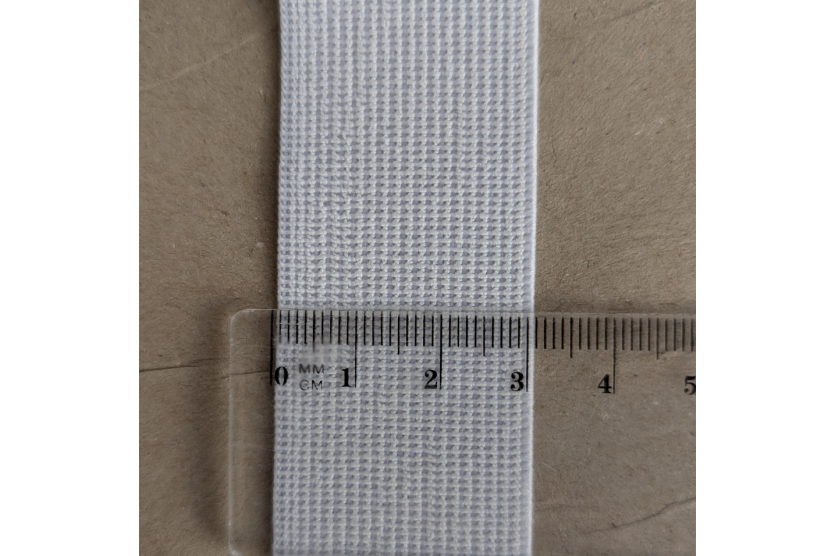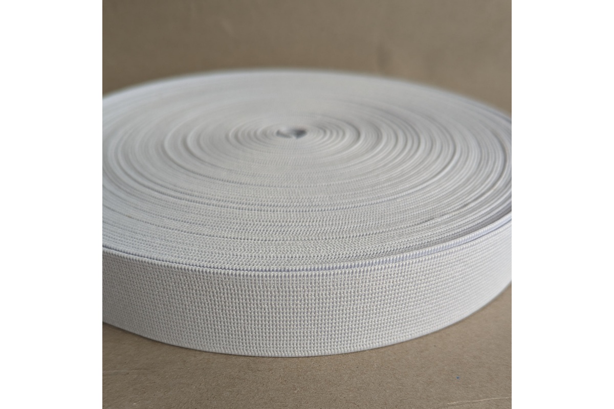 30mm white elastic, woven, calendered.