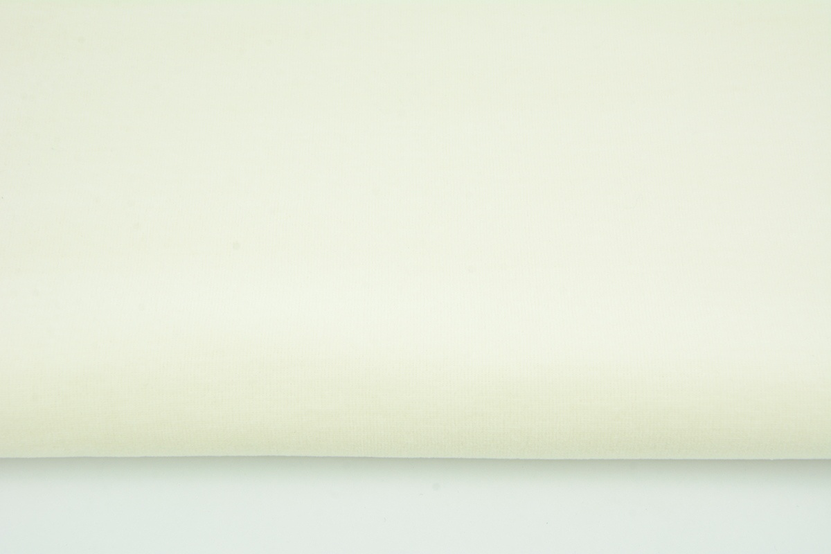 100% cotton velour knitwear in a plain creamy color. Application: clothing, decorative.