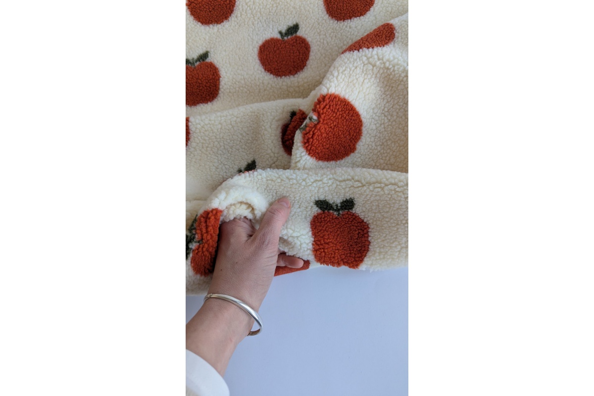Teddy, sztuczne futerko, żakardowe jabłuszka