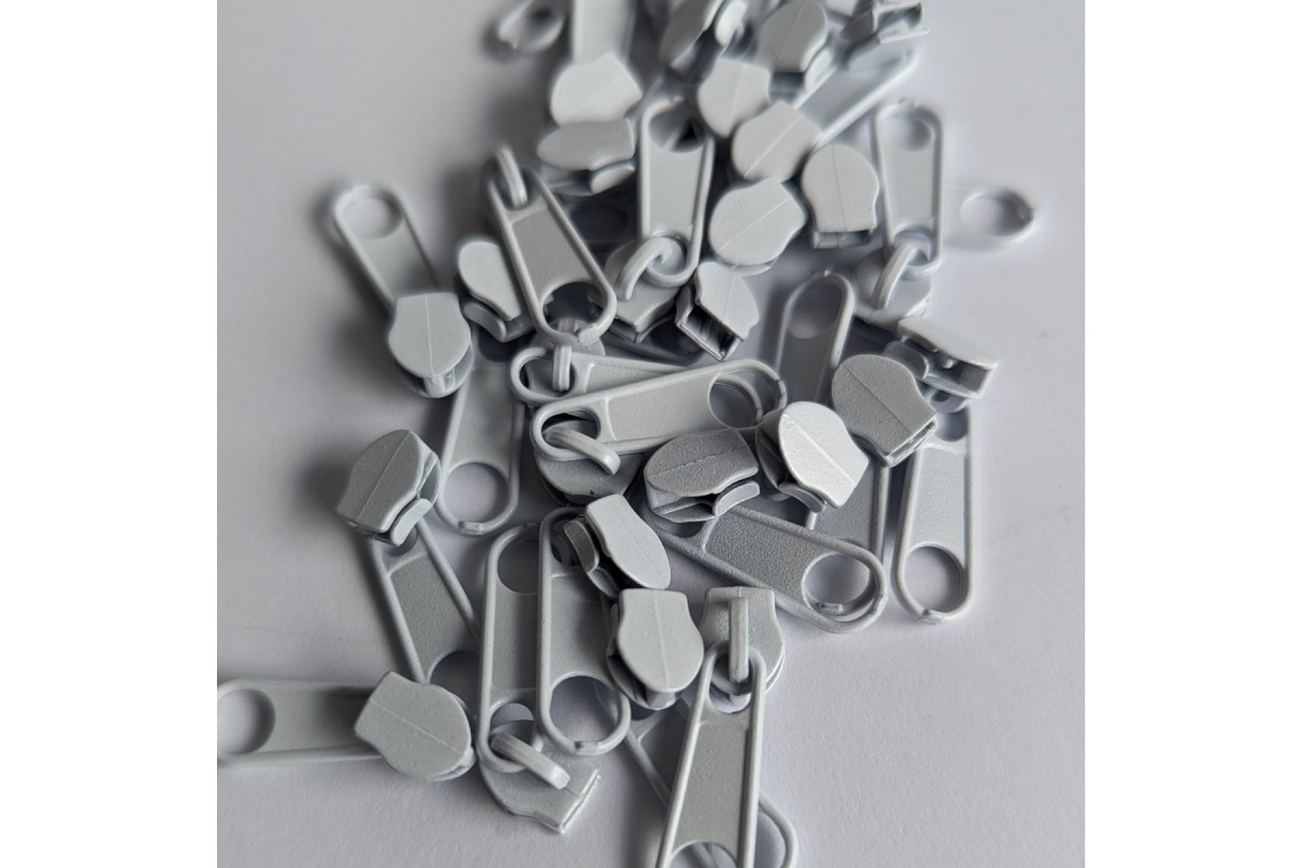 Suwak do zamków spiralnych z kordem 3mm w kolorze białym.
