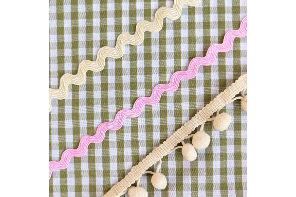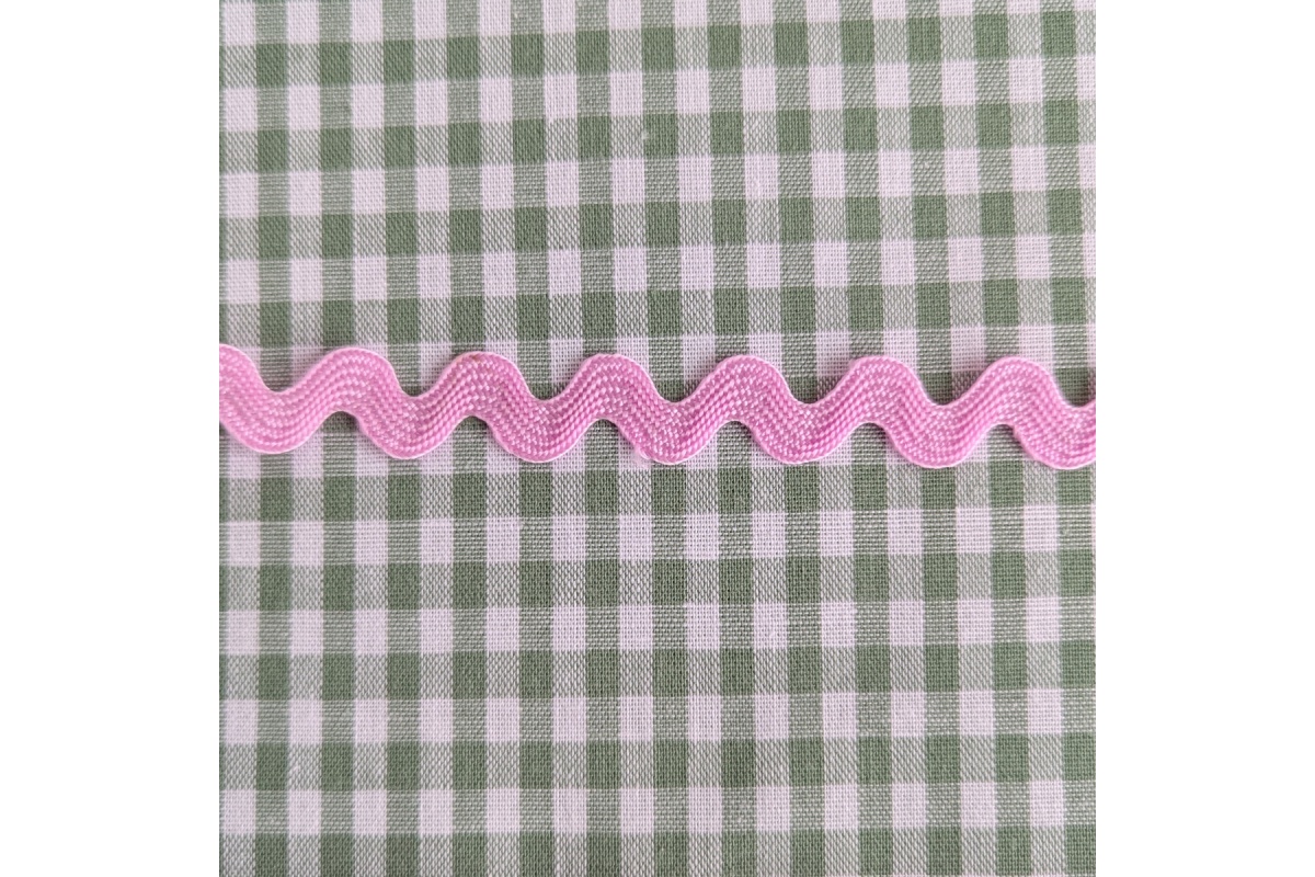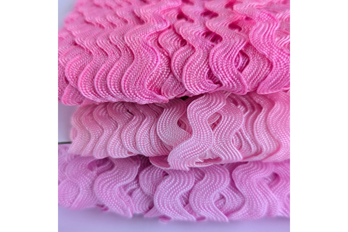 Taśma zygzakowa w delikatnym, chłodnym odcieniu różu. Ozdobny wzór fali o szerokości ok. 12 mm, mierzonej między skrajnymi punktami, nadaje projektom subtelny i dekoracyjny charakter. Szerokość samej taśmy wynosi ok. 7 mm.