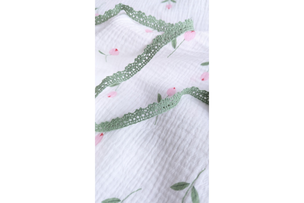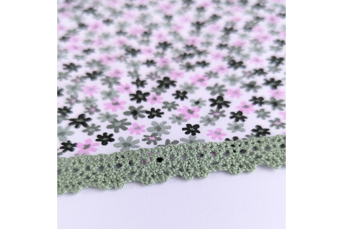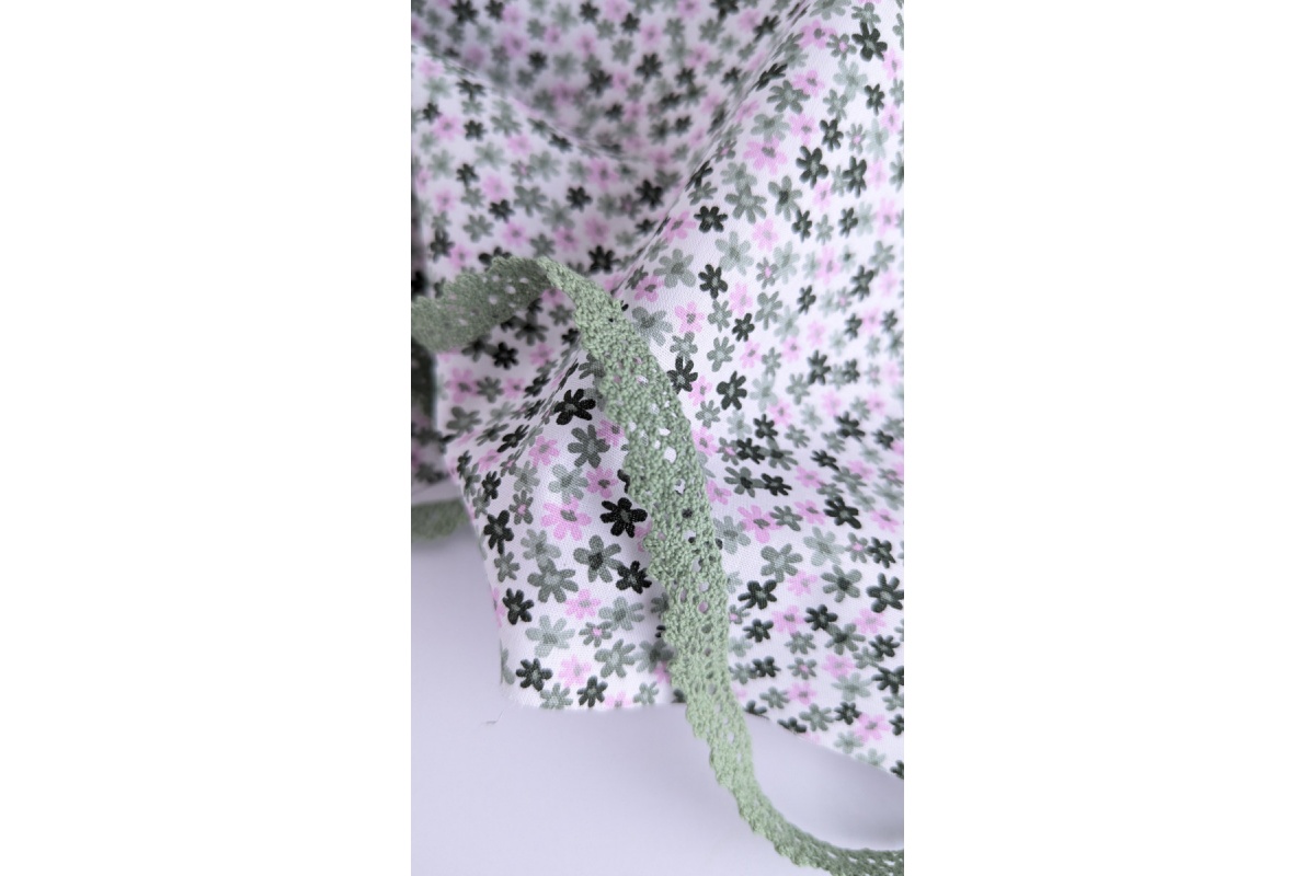 Bawełniana koronka o szerokości 12 mm w bazyliowym odcieniu. Doskonale sprawdzi się jako dekoracyjne wykończenie ubrań, dodatków, wyrobów handmade oraz tekstyliów domowych. Naturalny skład nadaje projektom delikatny i elegancki wygląd.
