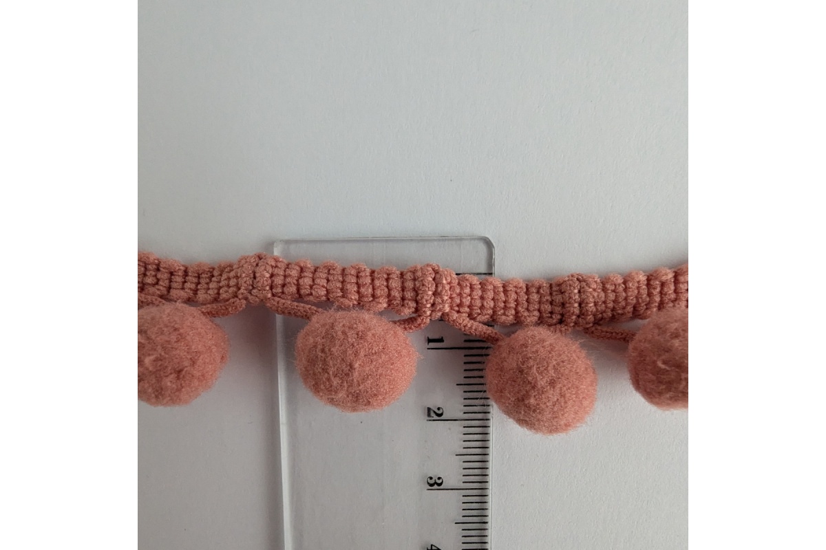 Tasiemka z pomponami, łososiowa- podwójne nitki
