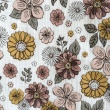 Muślin bawełniany, żółte, różowe kwiaty na ecru