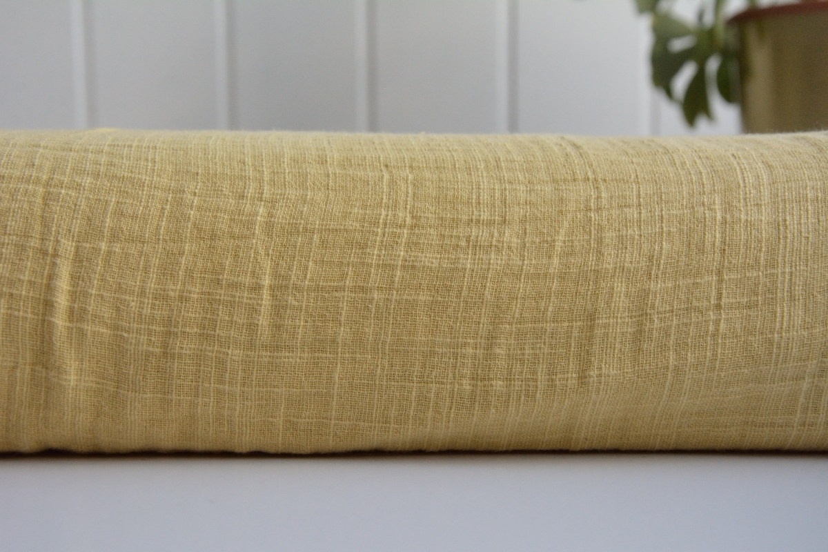 Miękka tkanina bawełniana, muślin o wyglądzie lnu w kolorze jasny musztardowy.
