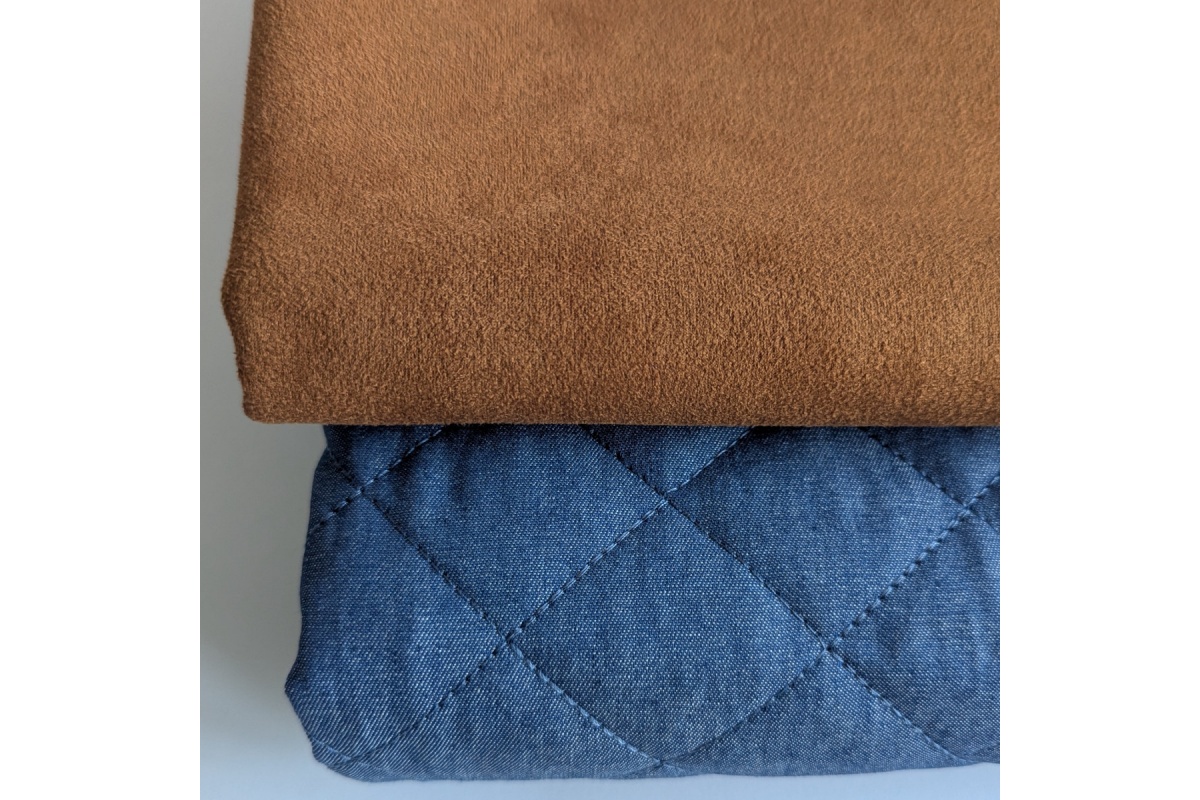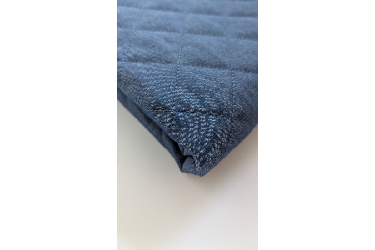 Lekka tkanina typu chambray, przepikowana miękką owatą oraz podszyta podszewką poliestrową. Dzięki trójwarstwowej strukturze materiał jest nie tylko przyjemny w dotyku, ale też lekko ocieplony i stabilny.
