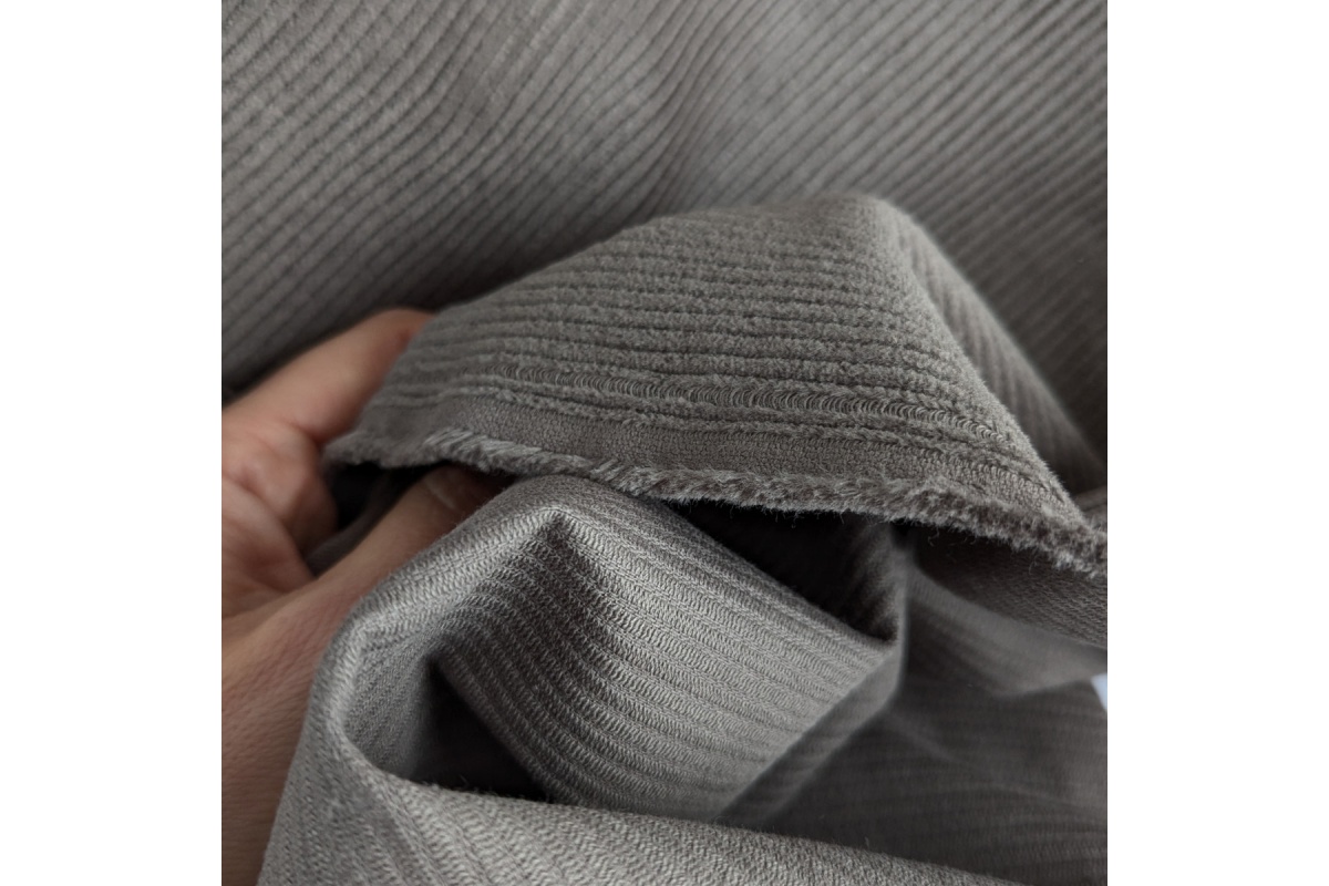 Sztruks bawełniany z dodatkiem spandexu (3%) to przyjemna w dotyku, elastyczna tkanina o gramaturze 320 g/m². Dzięki swojej strukturze z charakterystycznymi prążkami oraz naturalnemu składowi (97% bawełny, 3% spandexu), materiał jest jednocześnie trwały, przewiewny i komfortowy w noszeniu.