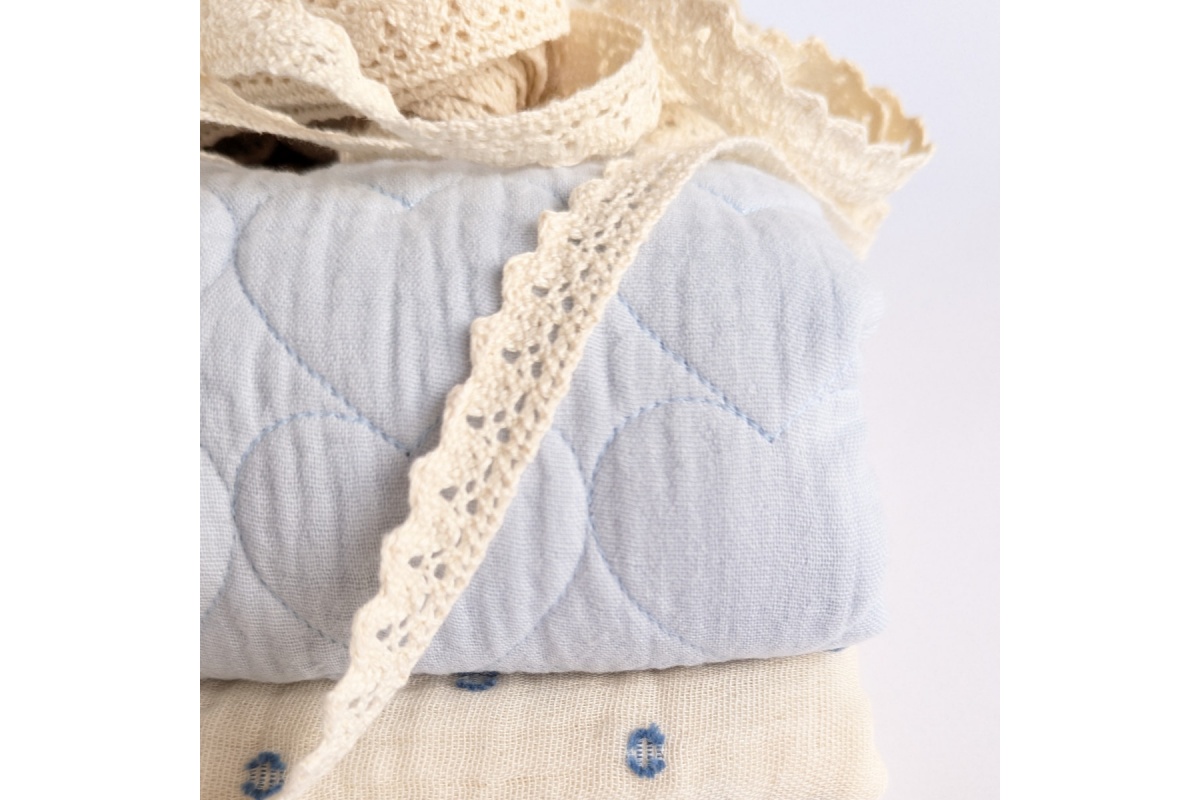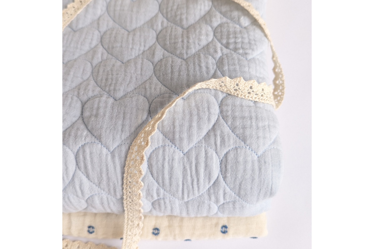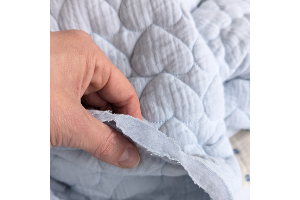 Muślin pikowany błękitny w serca-dwustronny z owatą
