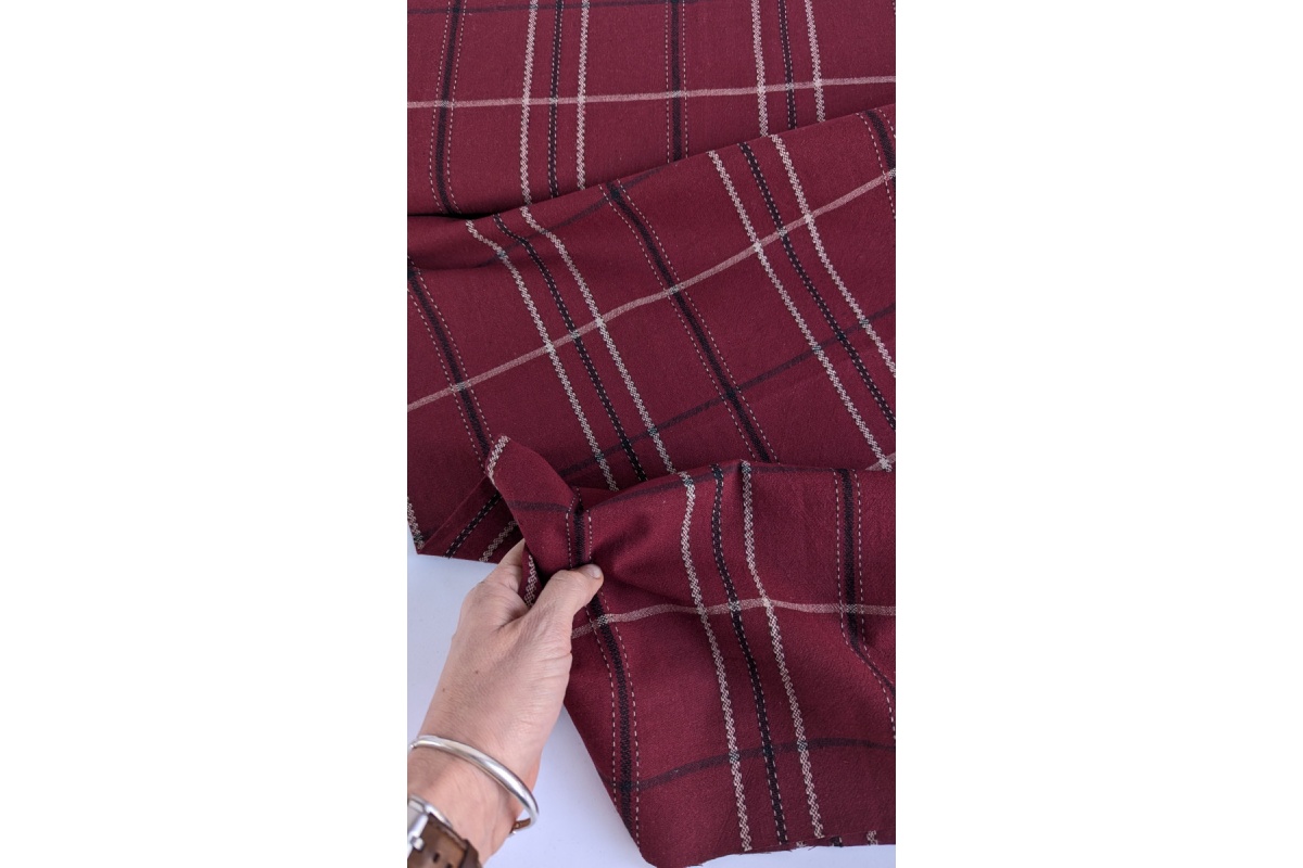 Tkanina lniano–bawełniana w kratę bordową – 50% len / 50% bawełna