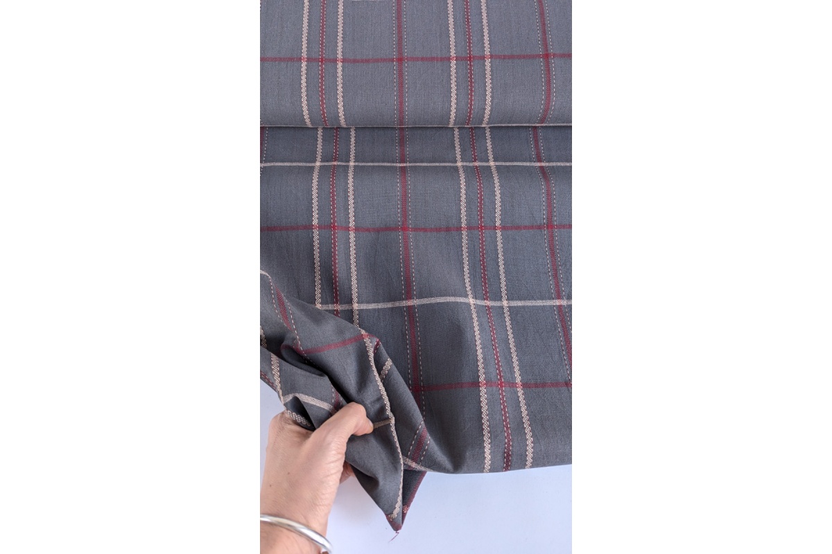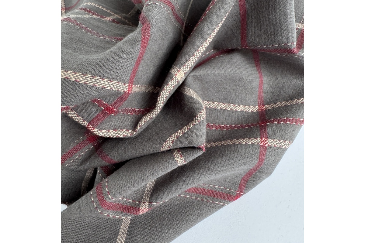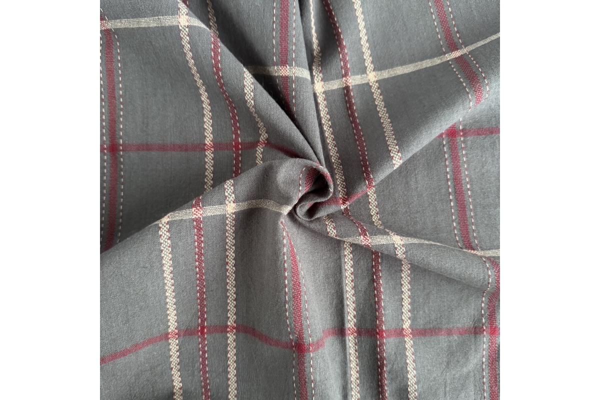 Tkanina lniano–bawełniana w kratę szarą – 50% len / 50% bawełna