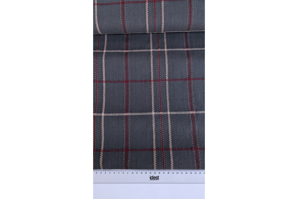 Stylowa i naturalna tkanina w klasyczną kratę w kolorze szarym, wykonana z mieszanki lnu i bawełny.