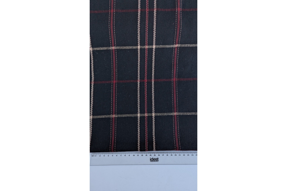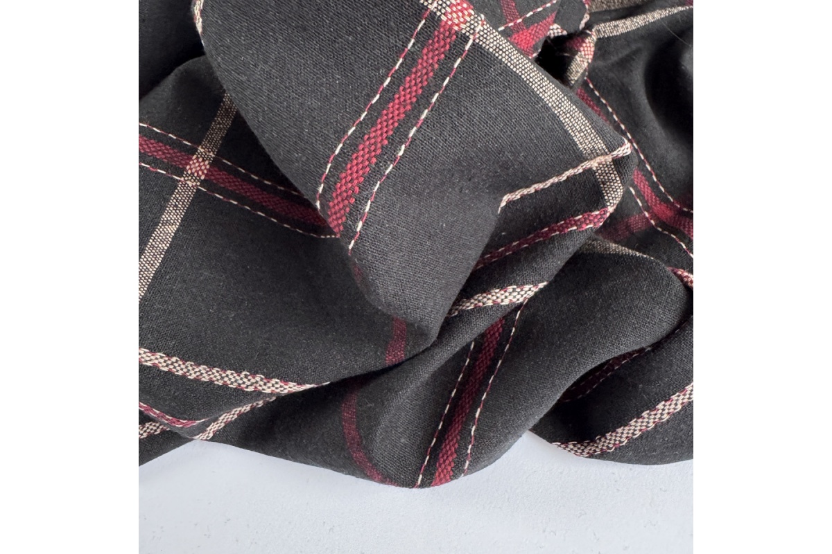 Tkanina lniano–bawełniana w kratę czarną – 50% len / 50% bawełna
