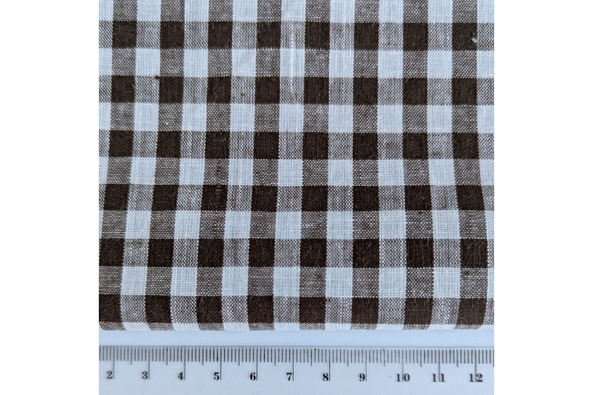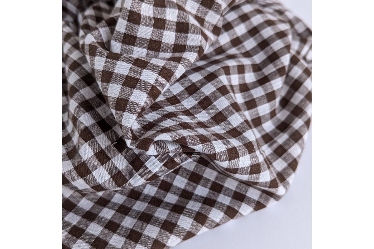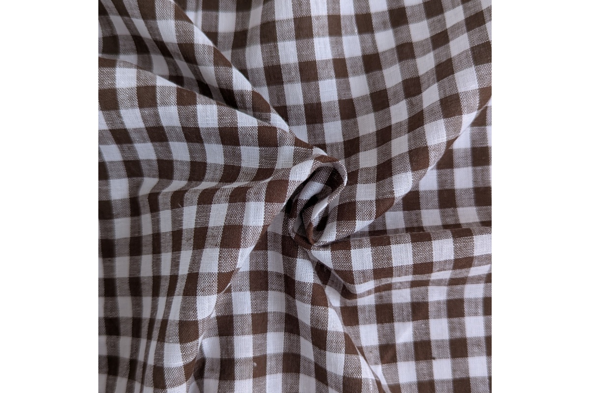 Tkanina bawełniana w kratkę o wielkości ok.6mm w kolorze brązowym. Tkanina dwustronna.