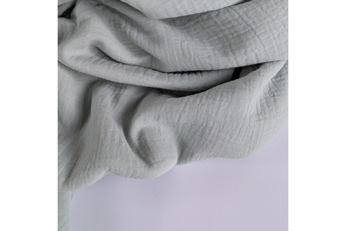 Naturalna, miękka i przewiewna tkanina bawełniana typu muślin podwójny w kolorze pudrowej mięty. To delikatny materiał, który zapewnia komfort, oddychalność i przyjemny dotyk na skórze.