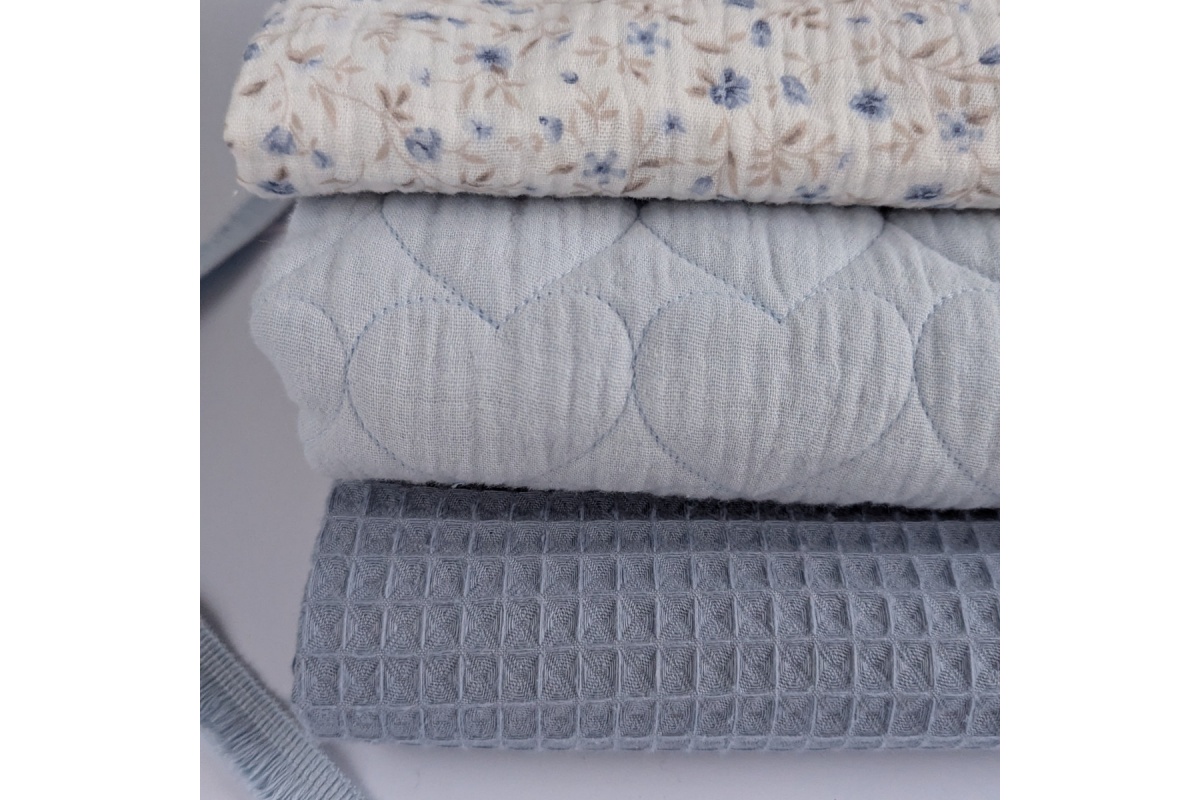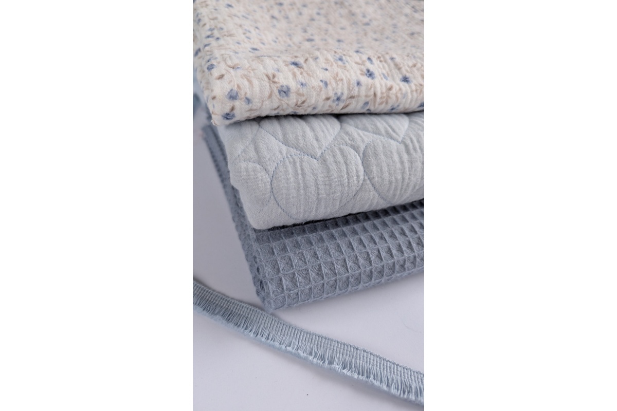 Bawełniana tkanina waflowa w kolorze niebieskim.