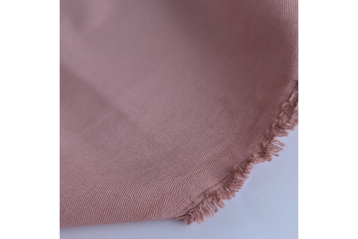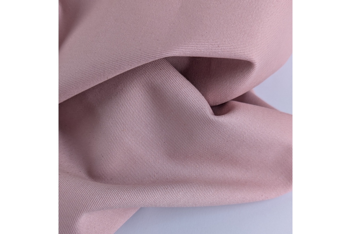 Gabardyna w delikatnym, pudrowym odcieniu różu to wytrzymała i uniwersalna tkanina o gramaturze 230 g/m². Charakteryzuje się zwartą strukturą i subtelnym skośnym splotem.