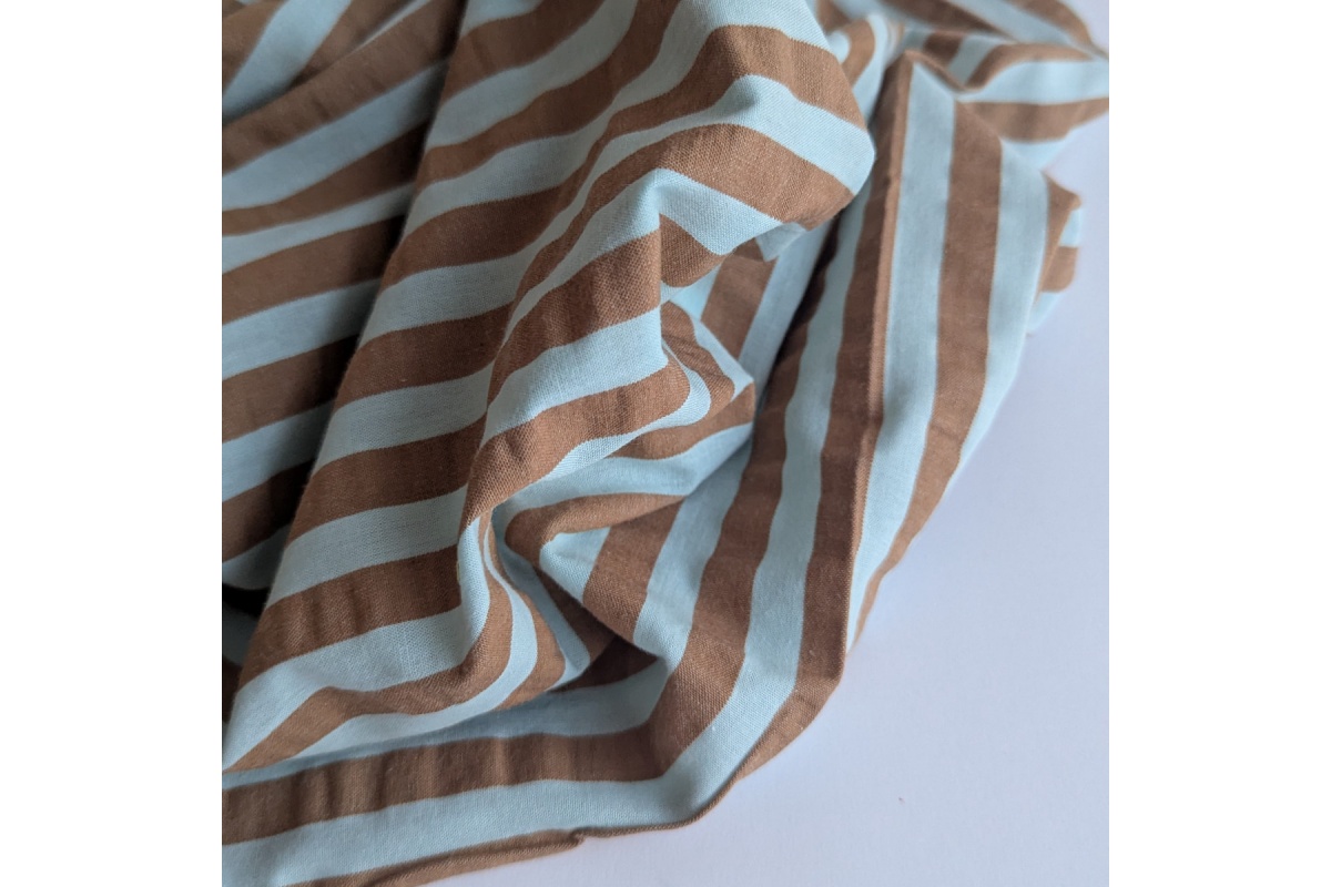 Seersucker paski miętowy/karmelowy