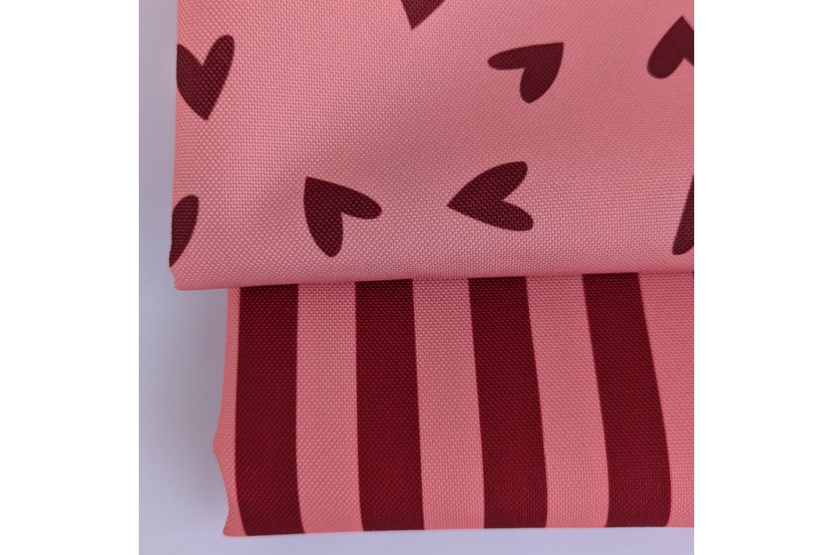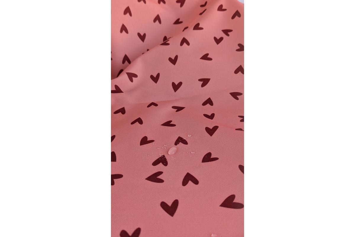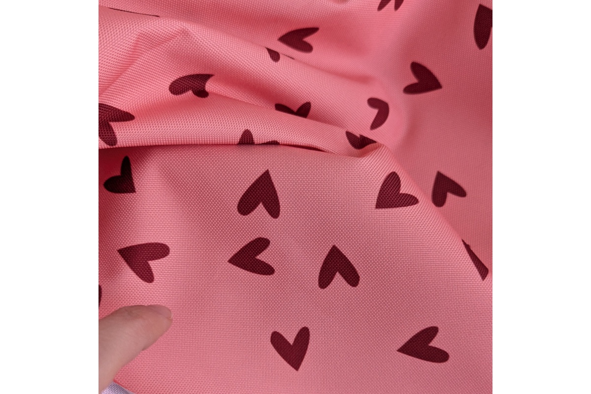 Tkanina wodoodporna, Oxford, serduszka czerwone na łososiowym tle