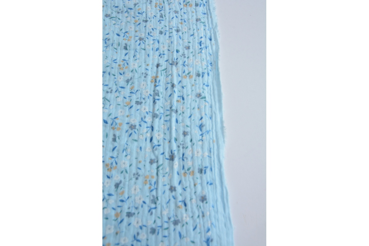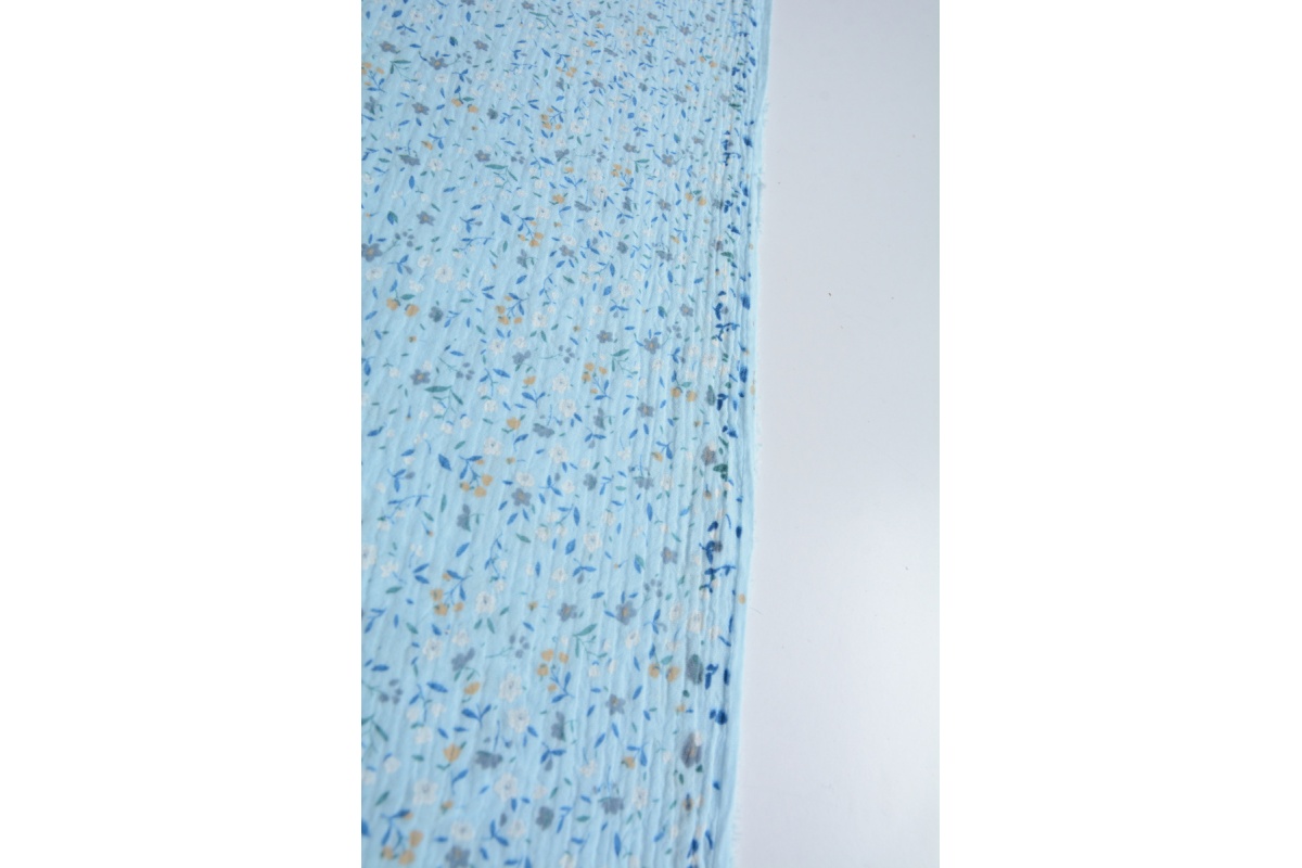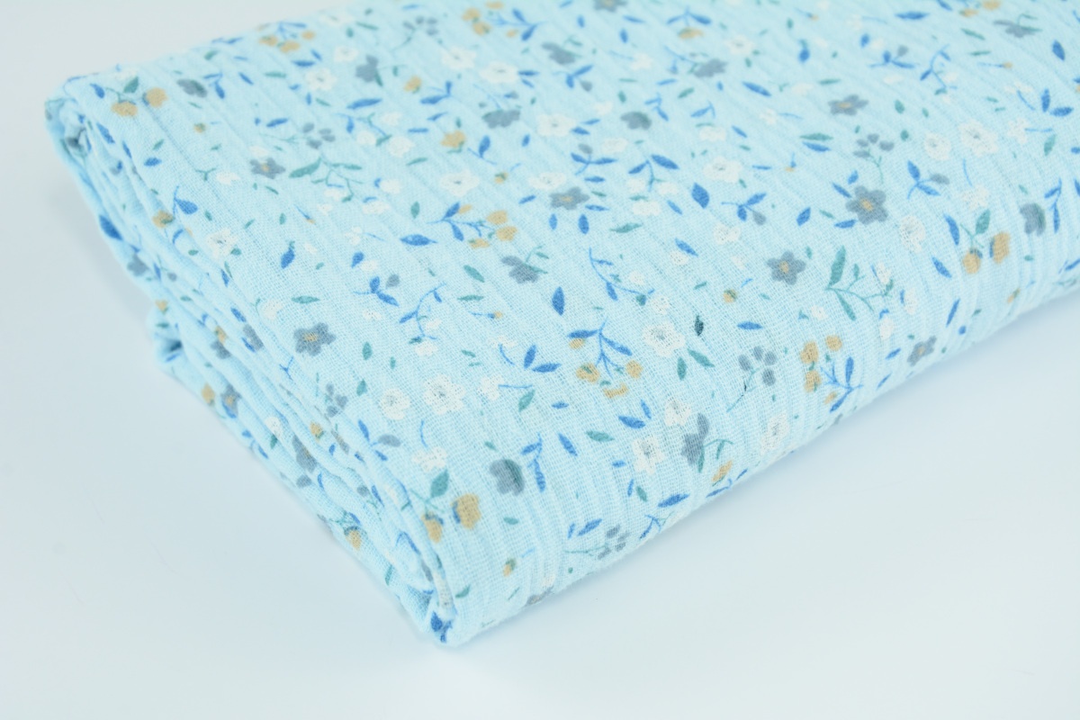 Muślin bawełniany, łączka na niebieskim tle II jakość