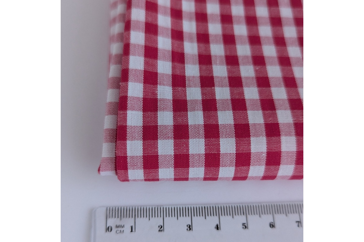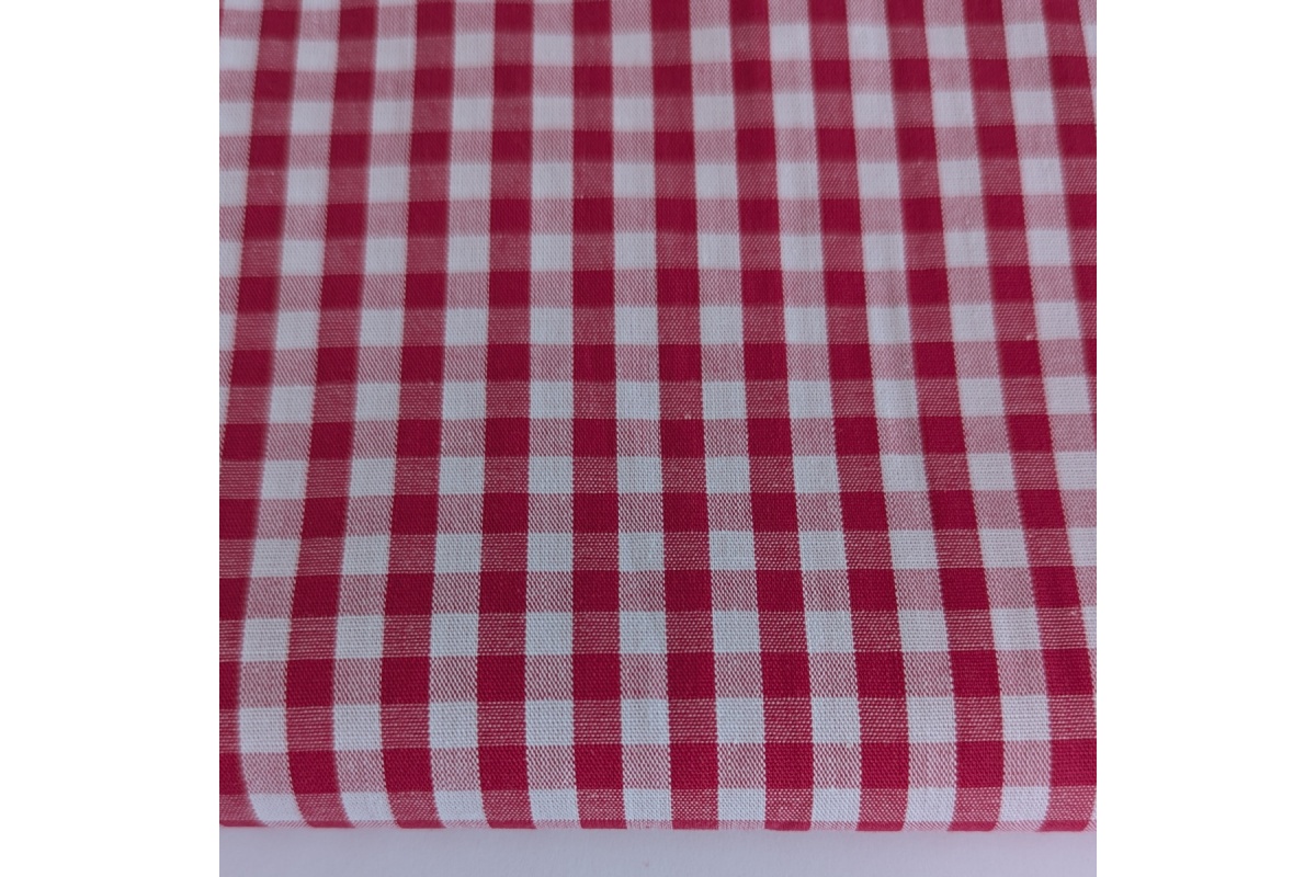 Tkanina bawełniana w kratkę o wielkości ok.5mm w kolorze malinowym. Tkanina dwustronna.