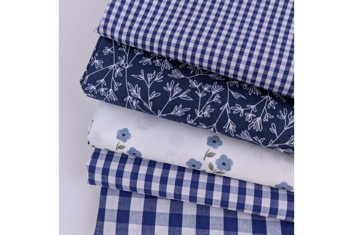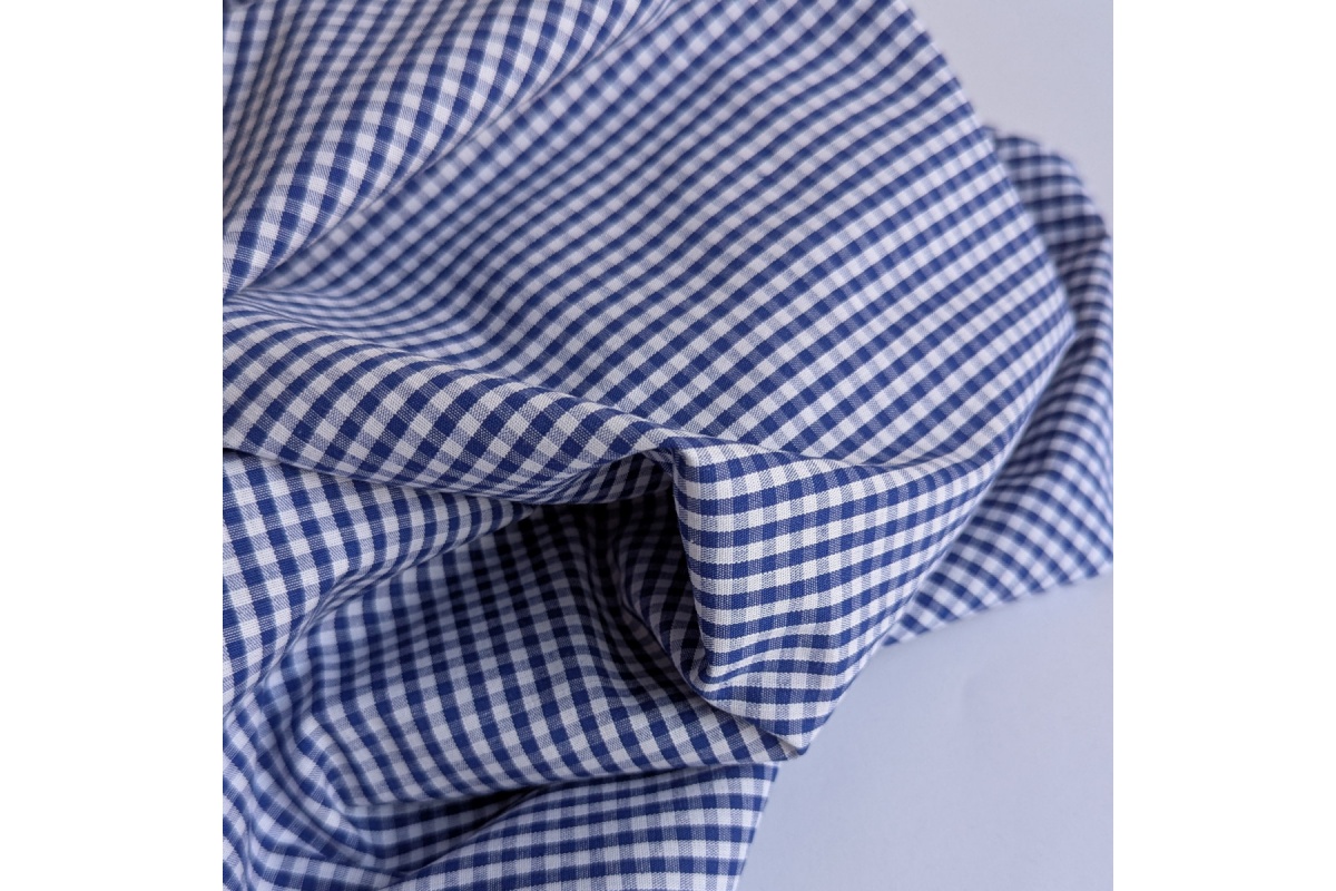 Tkanina bawełniana w kratkę o wielkości ok.3mm w kolorze ciemnoniebieskim. Tkanina dwustronna.