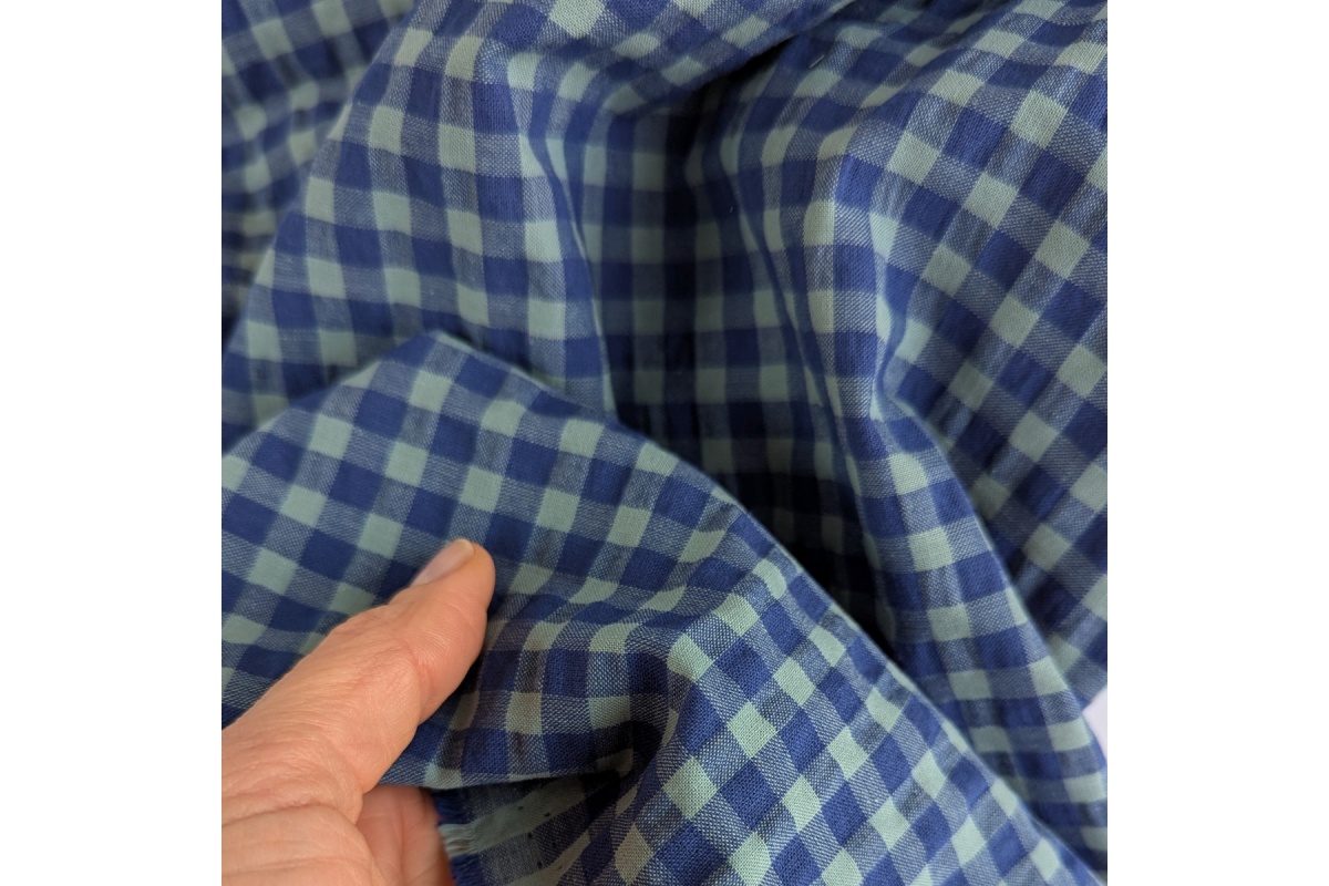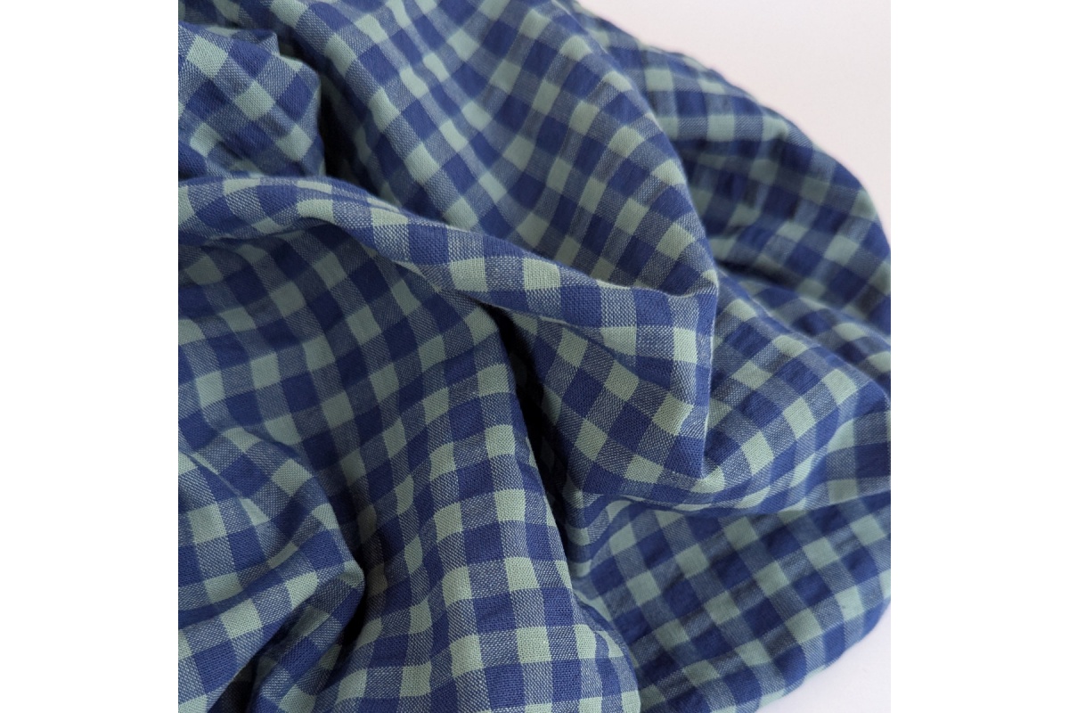 Stylowa i przewiewna tkanina seersucker w klasyczną, 7mm krateczkę mchabrowo-miętową. Jej charakterystyczna, lekko pomarszczona faktura nie tylko nadaje jej wyjątkowy wygląd, ale również sprawia, że materiał nie przylega do ciała, co zapewnia doskonały komfort noszenia – zwłaszcza w cieplejsze dni.