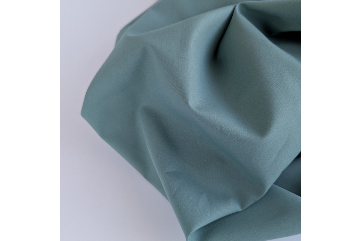 Tkanina bawełniana z przędzy czesanej w szałwiowym kolorze.