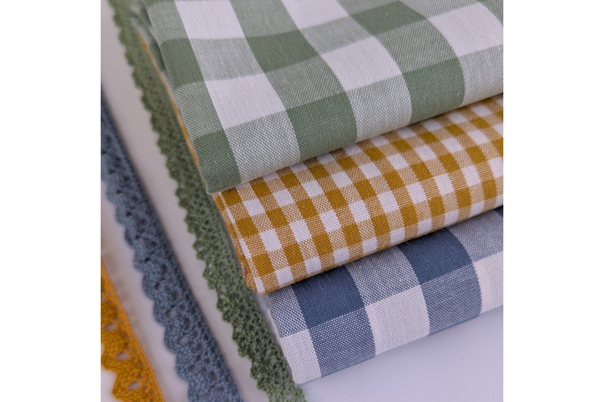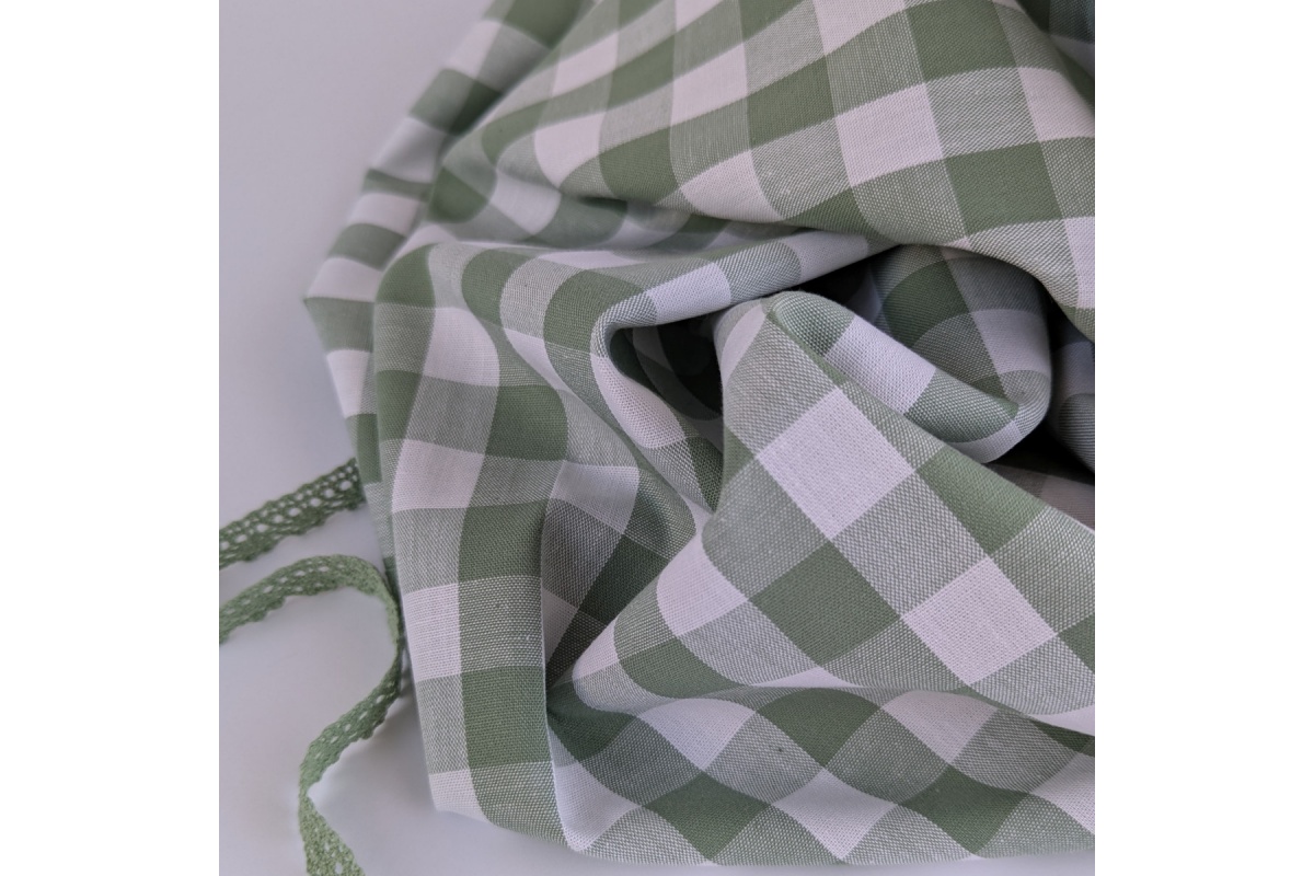 Tkanina bawełniana dwustronna w eukaliptusową kratkę o wielkości ok.2cm.