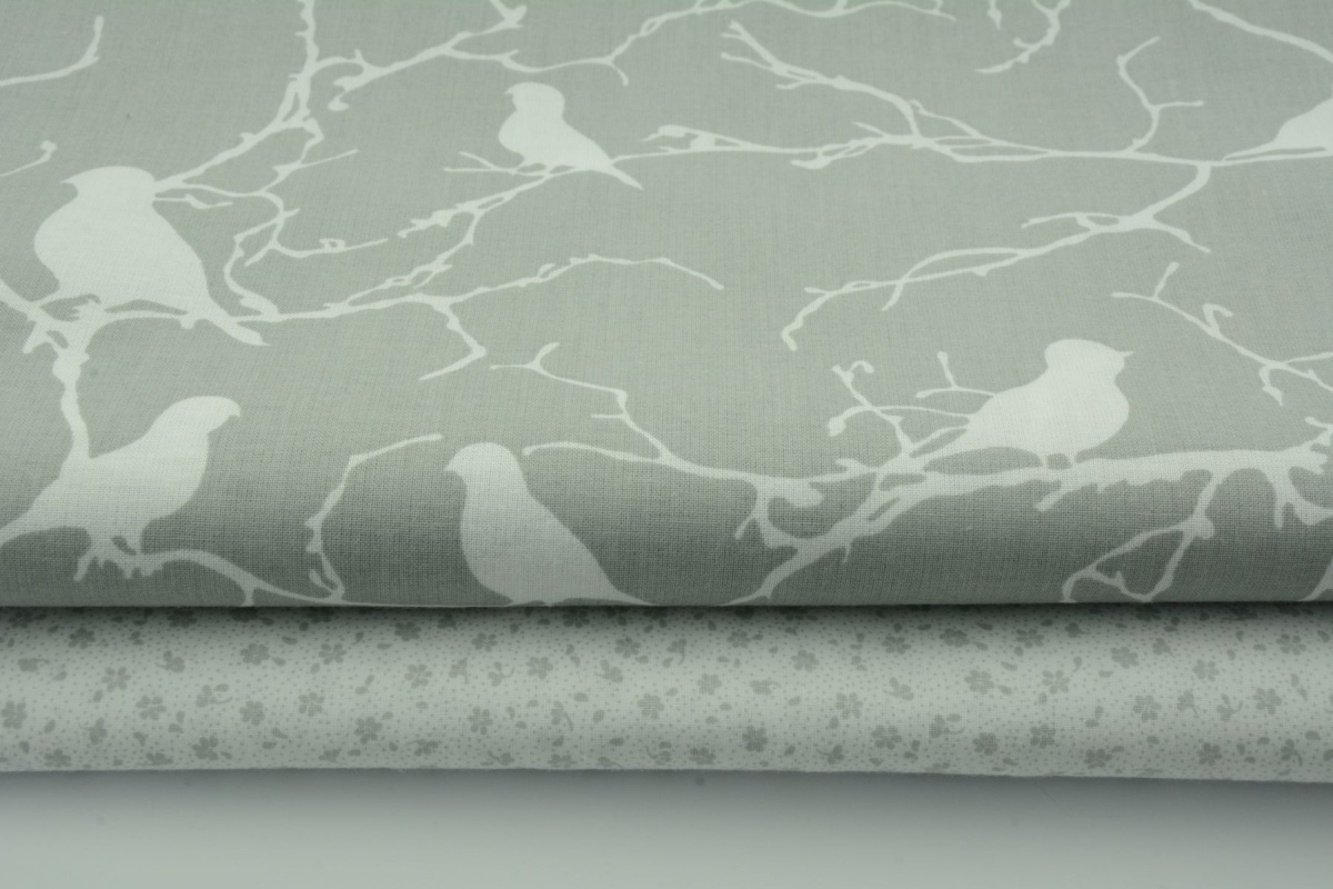 Bawełna 100% biała łączka na szarym tle, drobne kwiatki