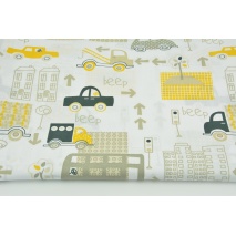 Tkanina bawełniana, popelina w małe gepardy na niebieskim tle.