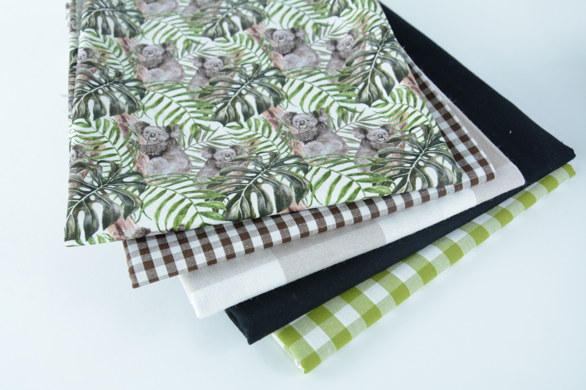Zestaw 5 sztuk tkanin/dzianin widocznych na zdjęciu.